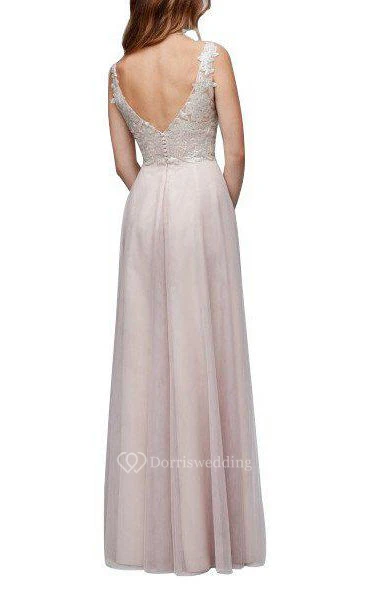 Strapped Tulle Long Bridesmaid Dress with Lace Bodice