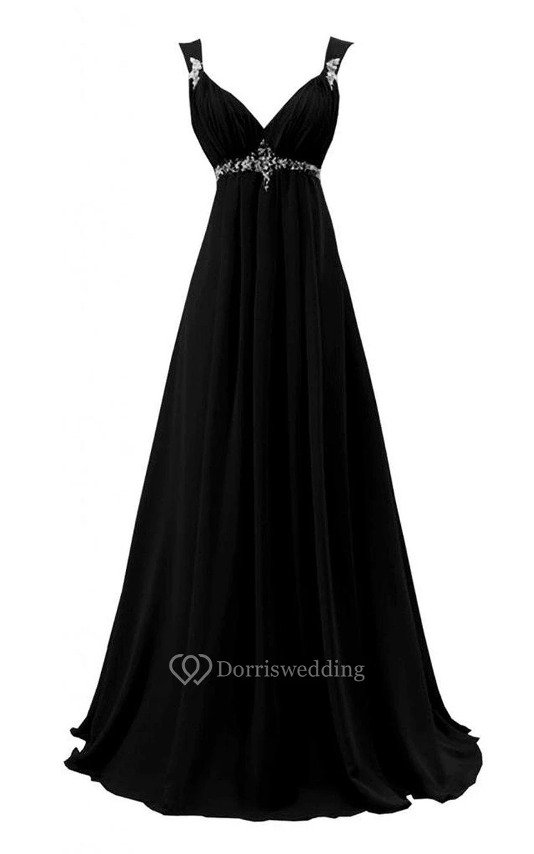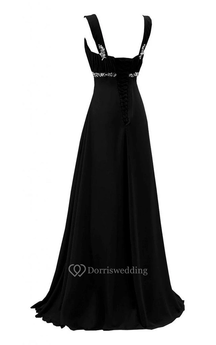 Straps A-line Long Dress With Beadings and Pleats