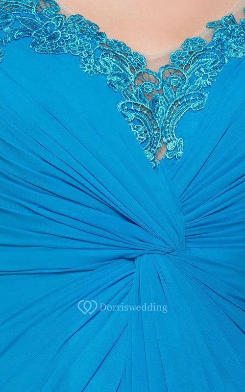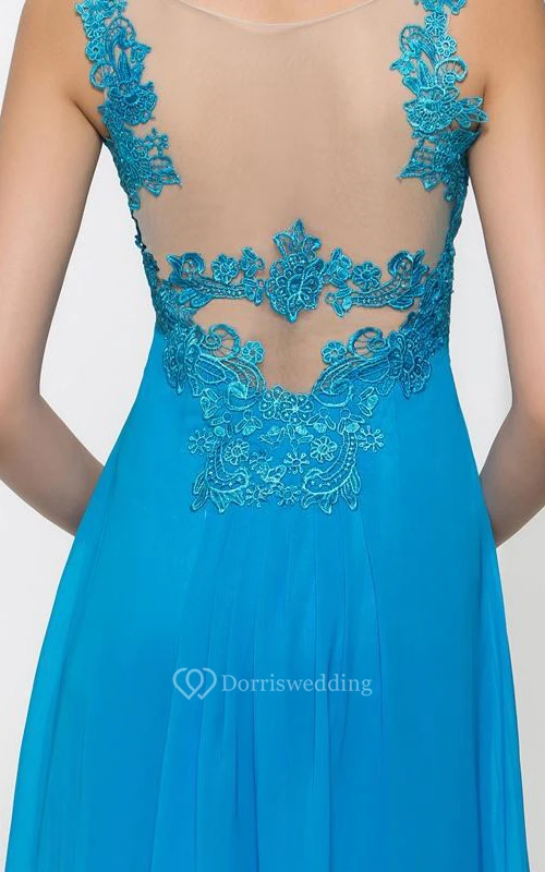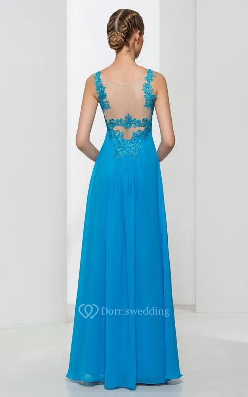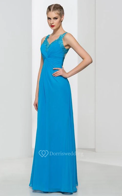 Straps Appliques Pleats Long Prom Dress