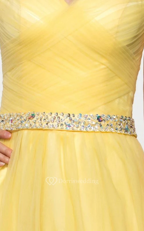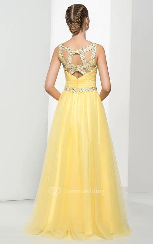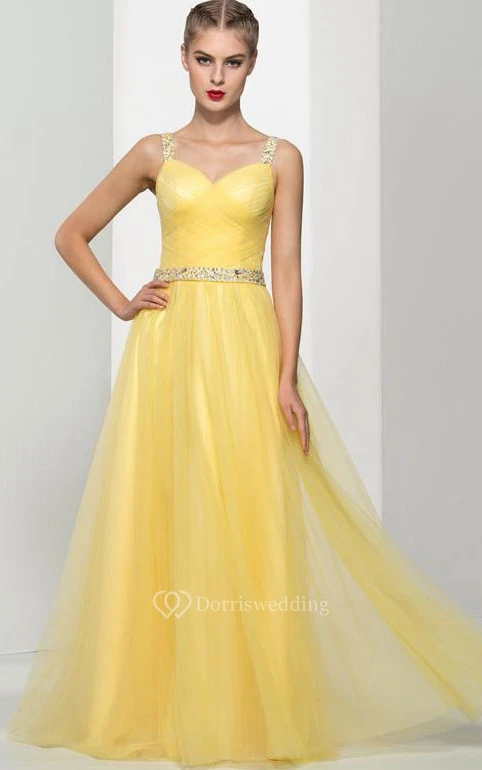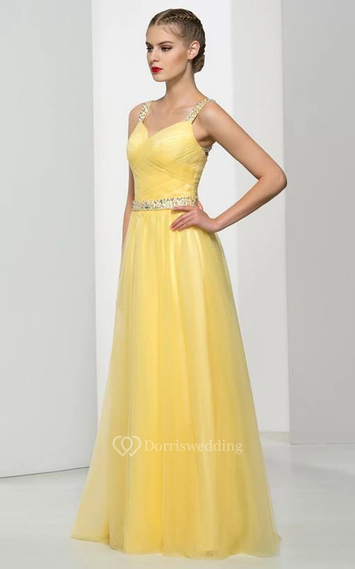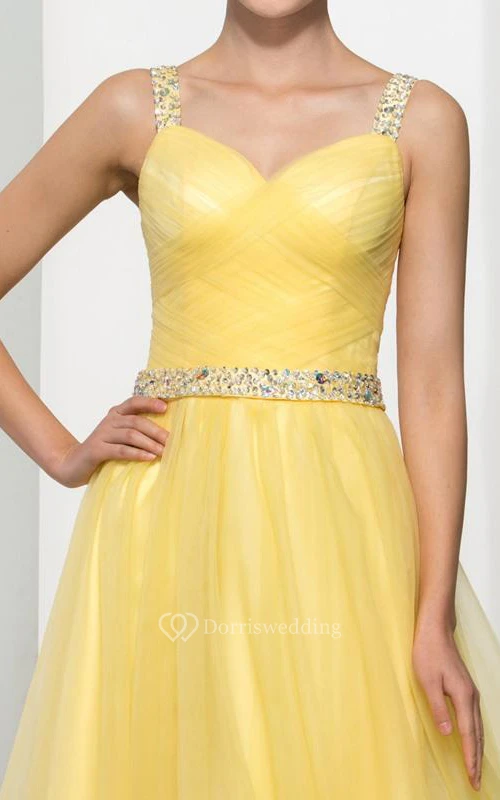 Straps Beading Pleats Hollow Prom Dress