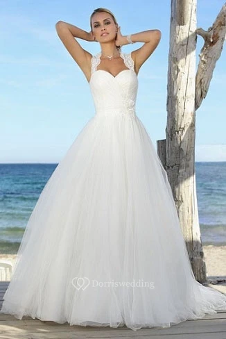 Straps Floor-Length Appliqued Tulle Wedding Dress
