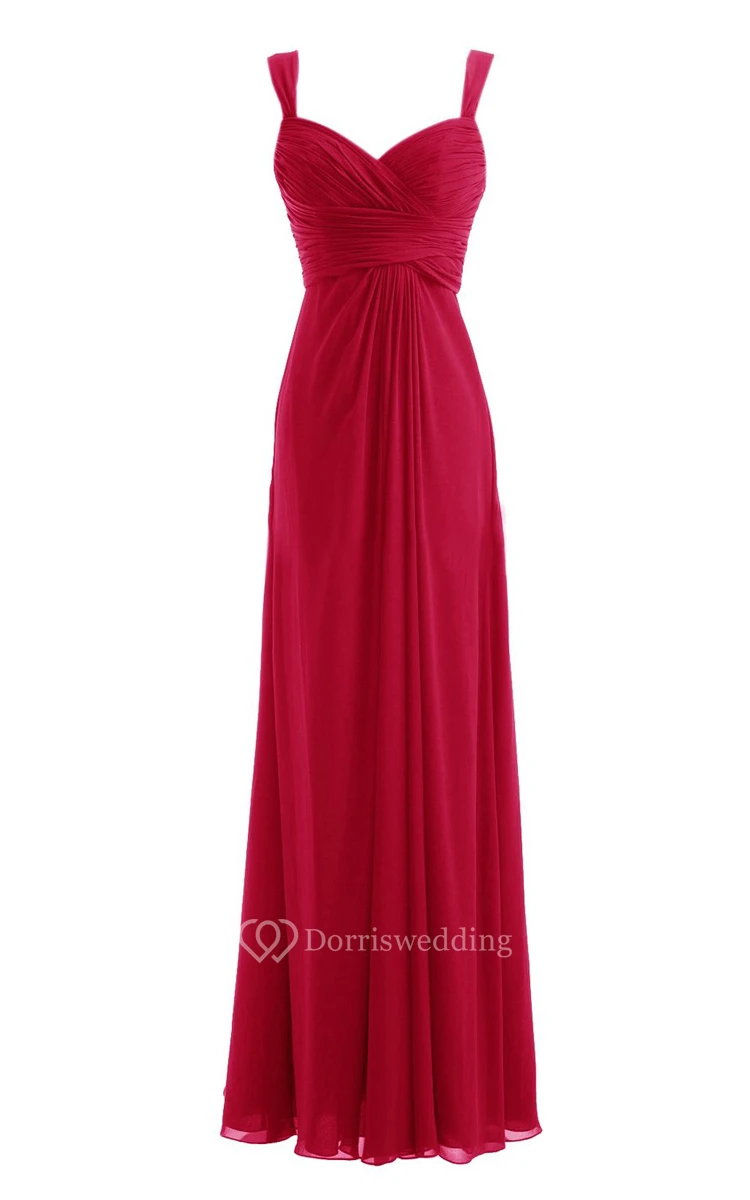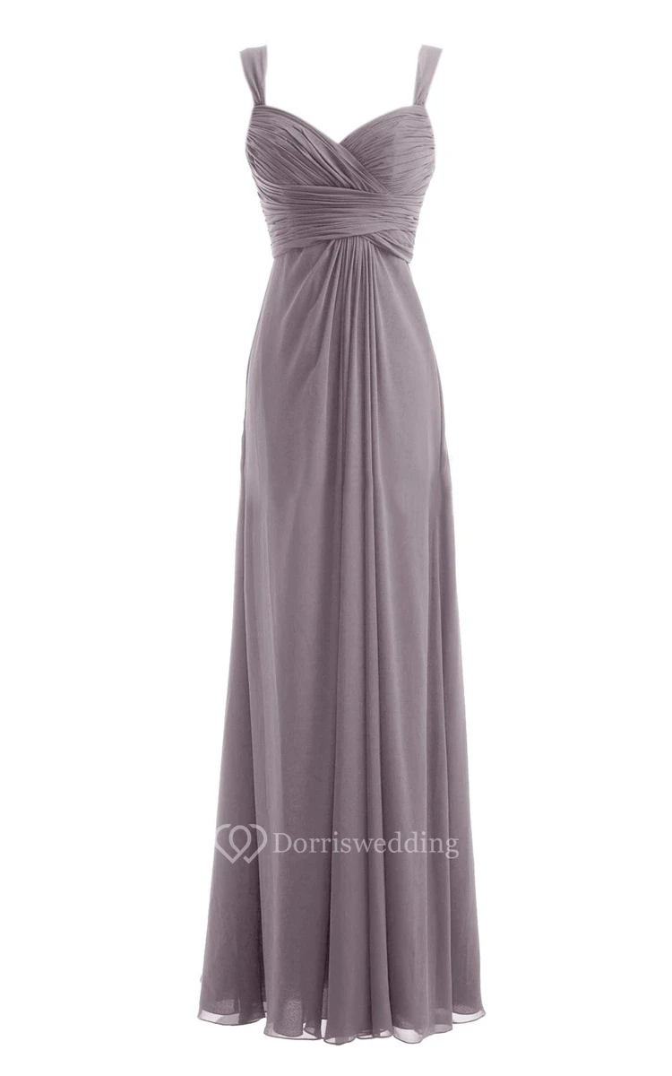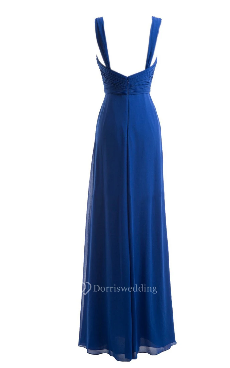 Straps Ruched A-line Gown With Deep-v Back