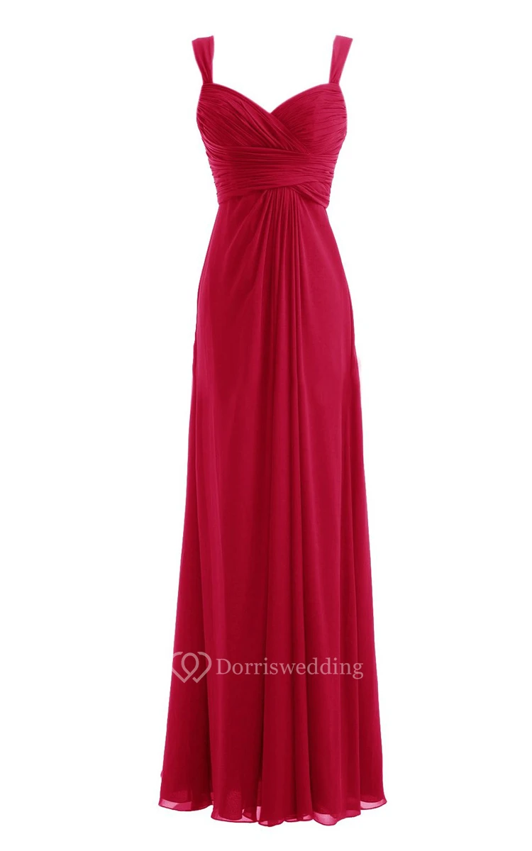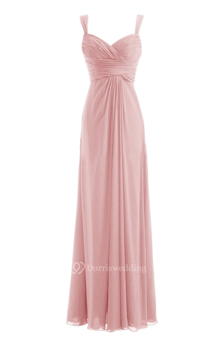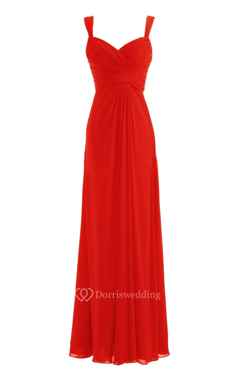 Straps Sweetheart Ruched Chiffon A-line Dress