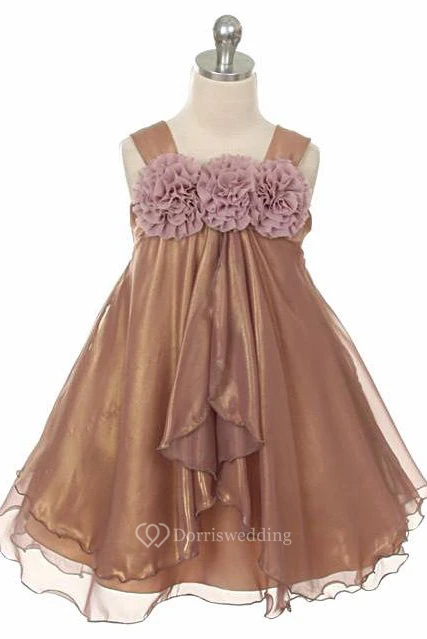 Straps Tea-Length Tiered Empire Chiffon Flower Girl Dress