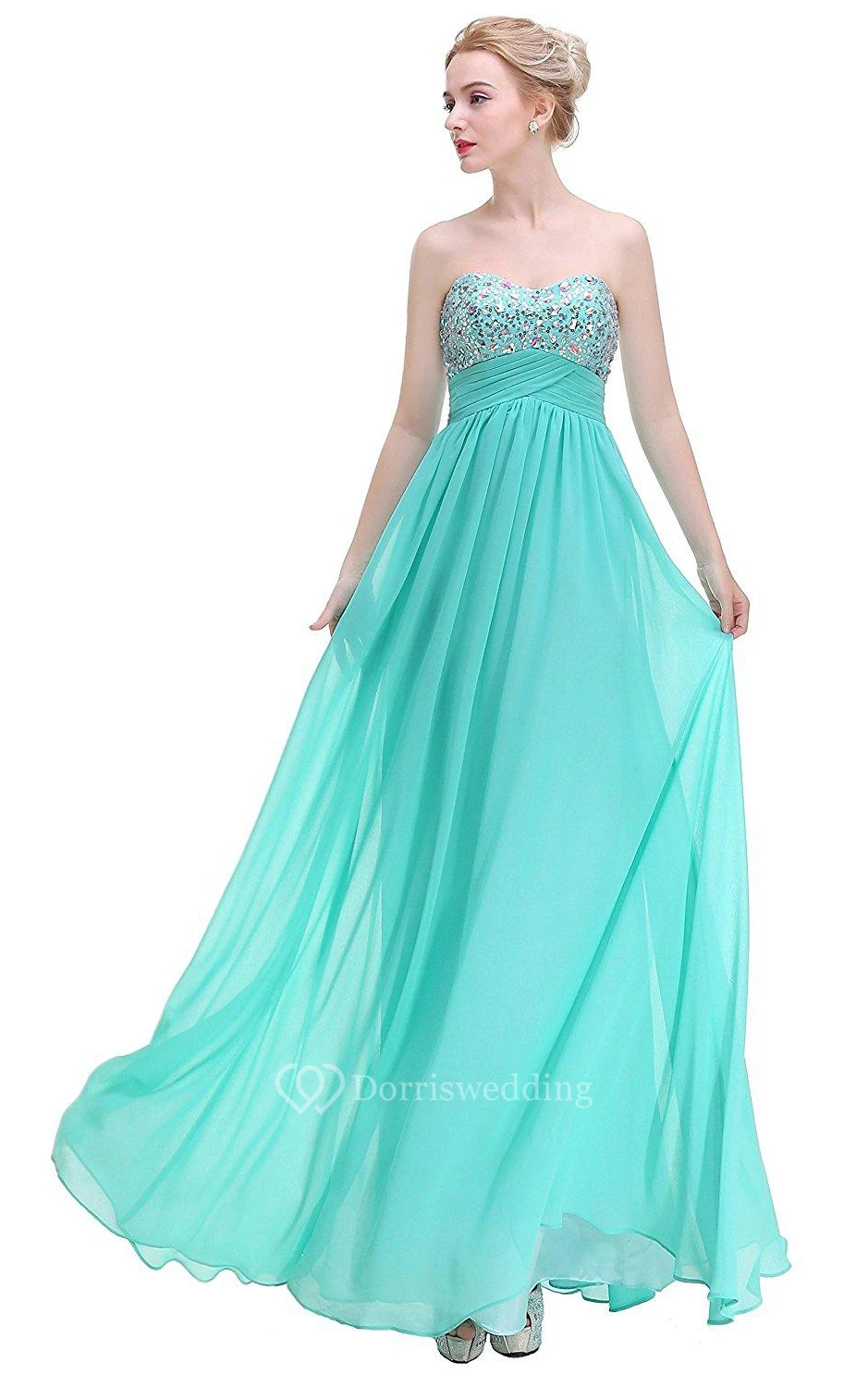 Stunning A-line Sweetheart Sequined Long Chiffon Dress