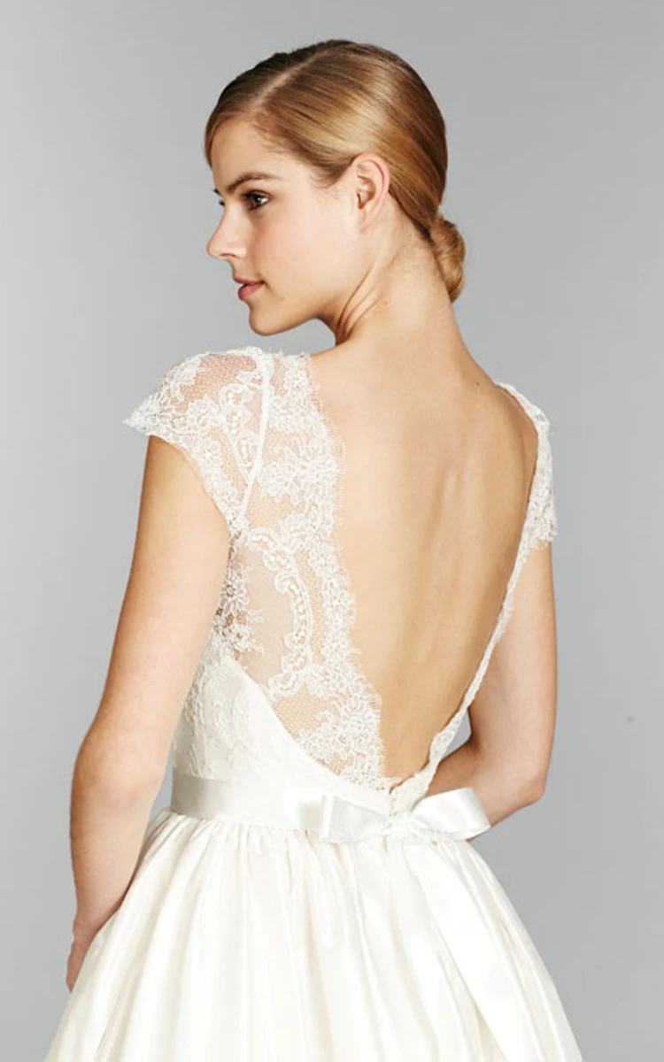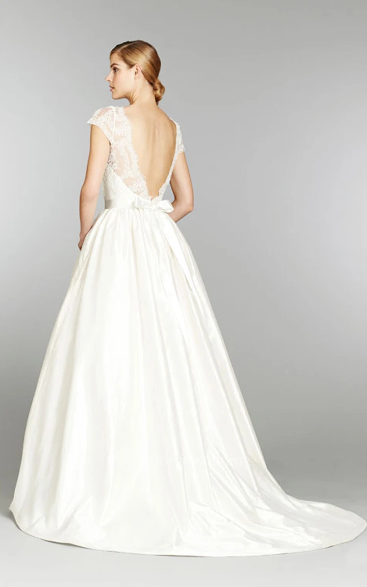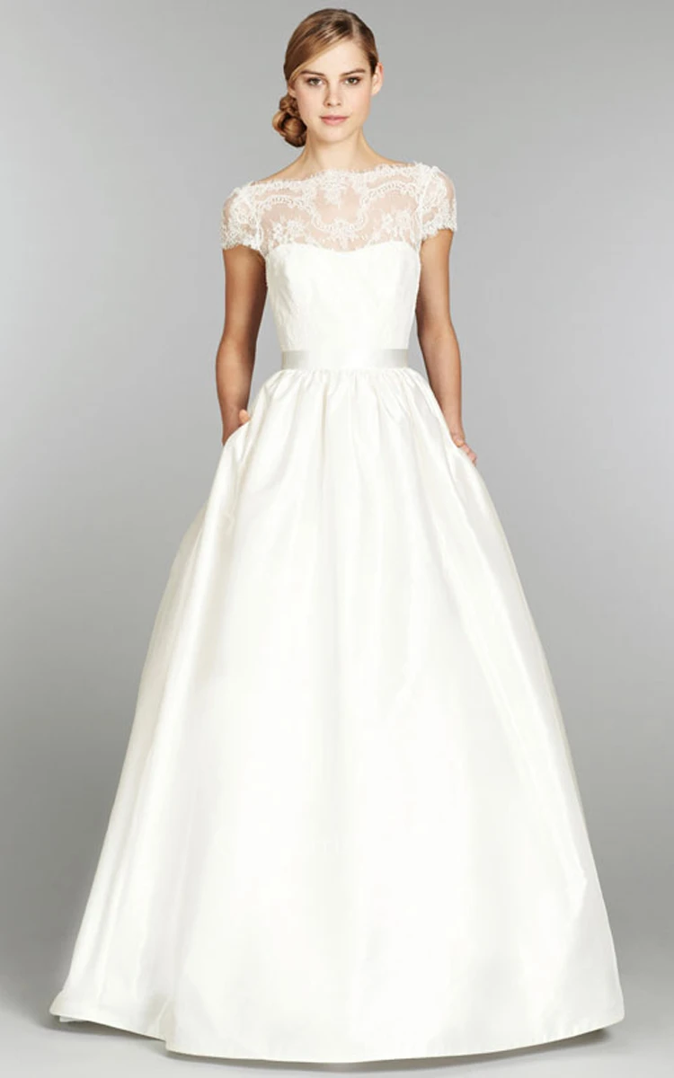 Stunning Cap Sleeve and Illusion Neckline Long Lace Gown