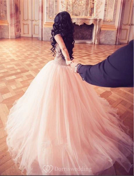 Stunning Crystal Princess Tulle Evening Dresses Floor Length Sweet 16 Quinceanera Dress