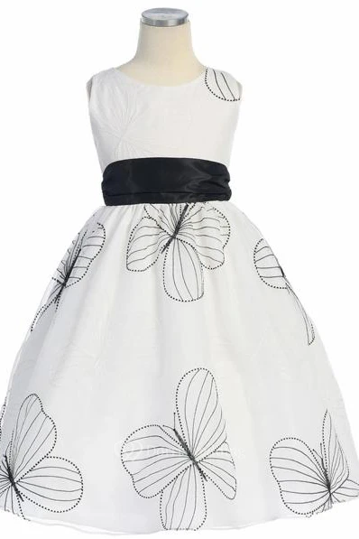 Tea-Length Bowed Embroideried Organza Flower Girl Dress