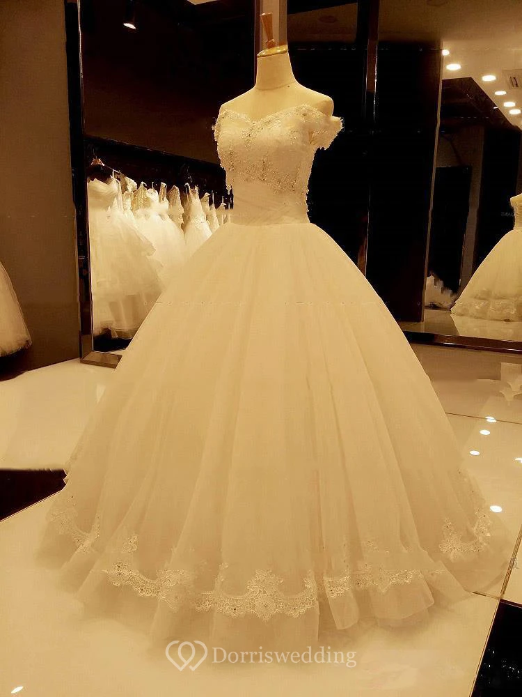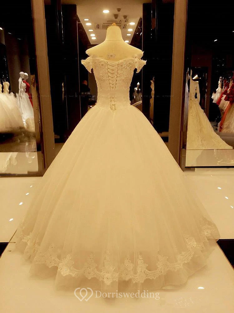 Stunning Off-the-Shoulder Tulle Lace Wedding Dress Ball Gown With Beadings