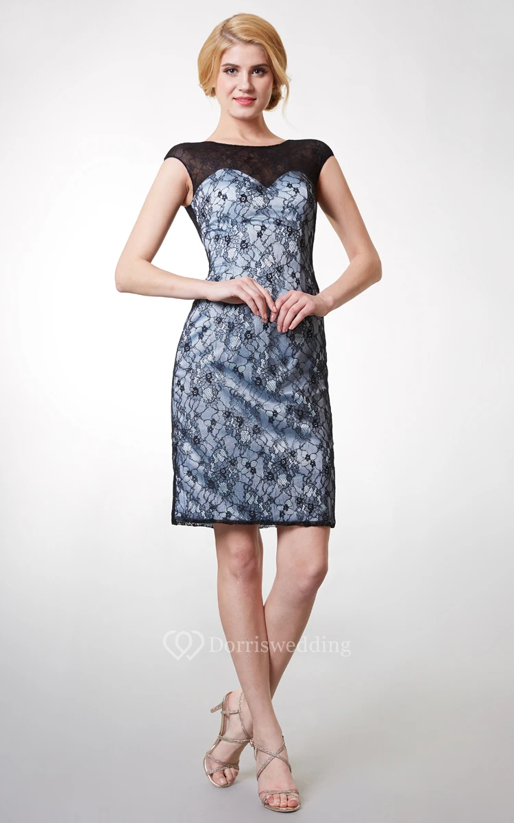 Stunning Short Cap Sleeve Lace Dress With Bateau Neck