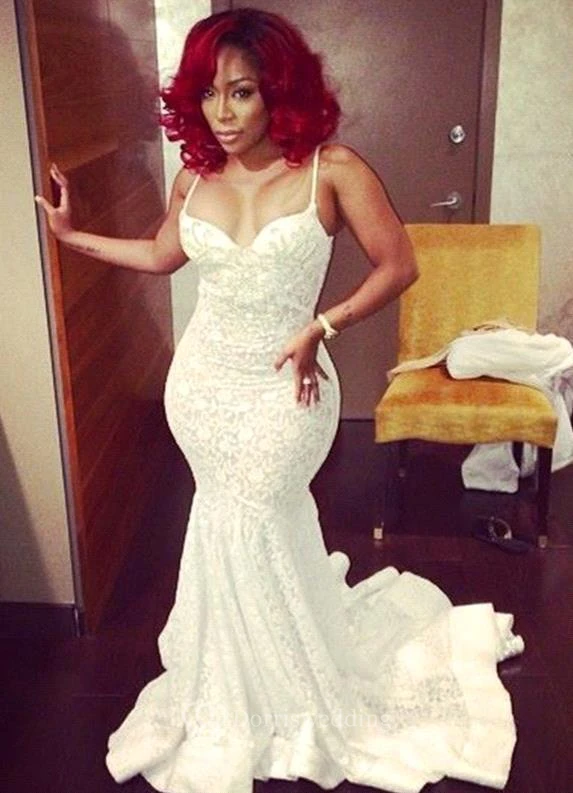 Stunning Spaghetti Straps Prom Dresses Lace With Train