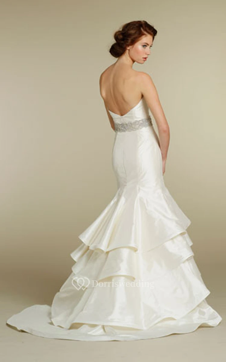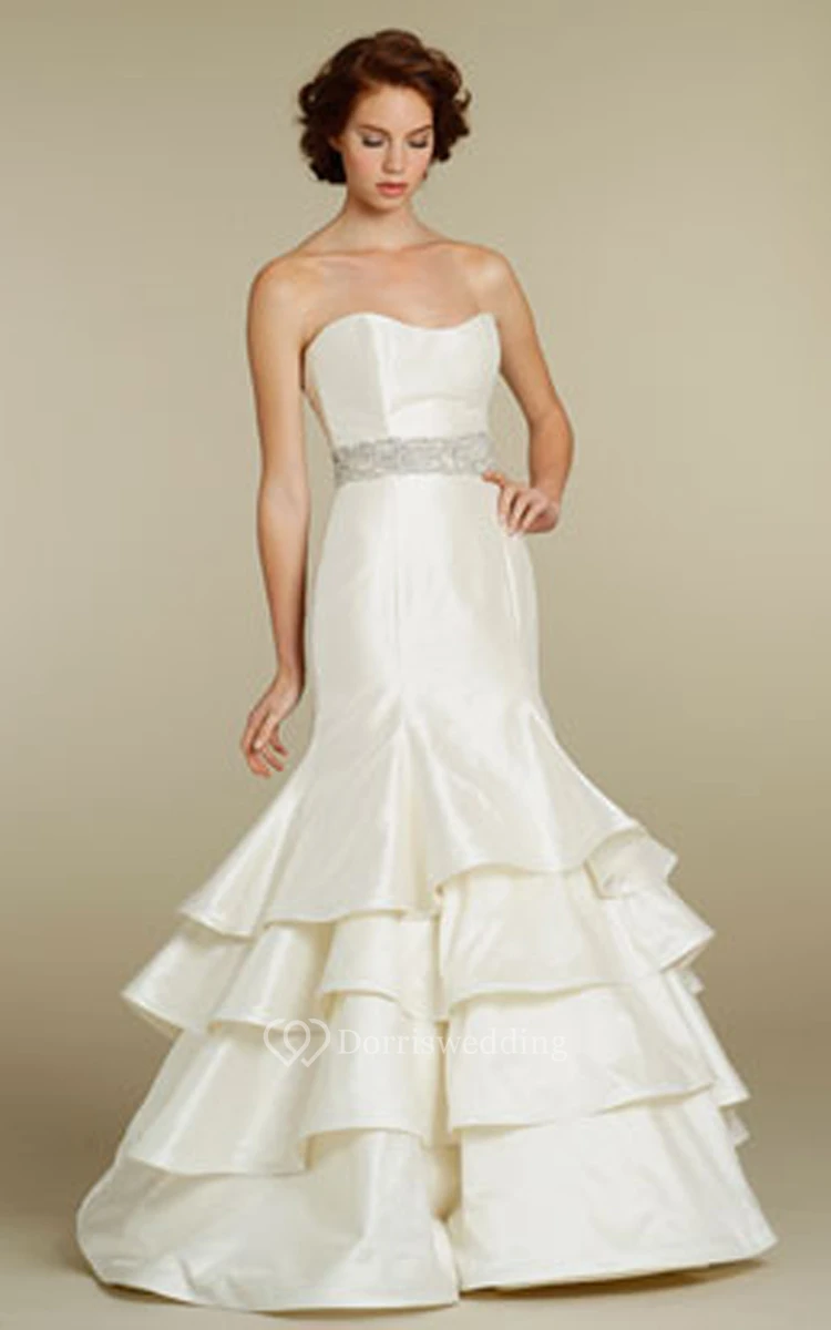 Stunning Strapless Tiered Dress With Crystal Embellished Belt