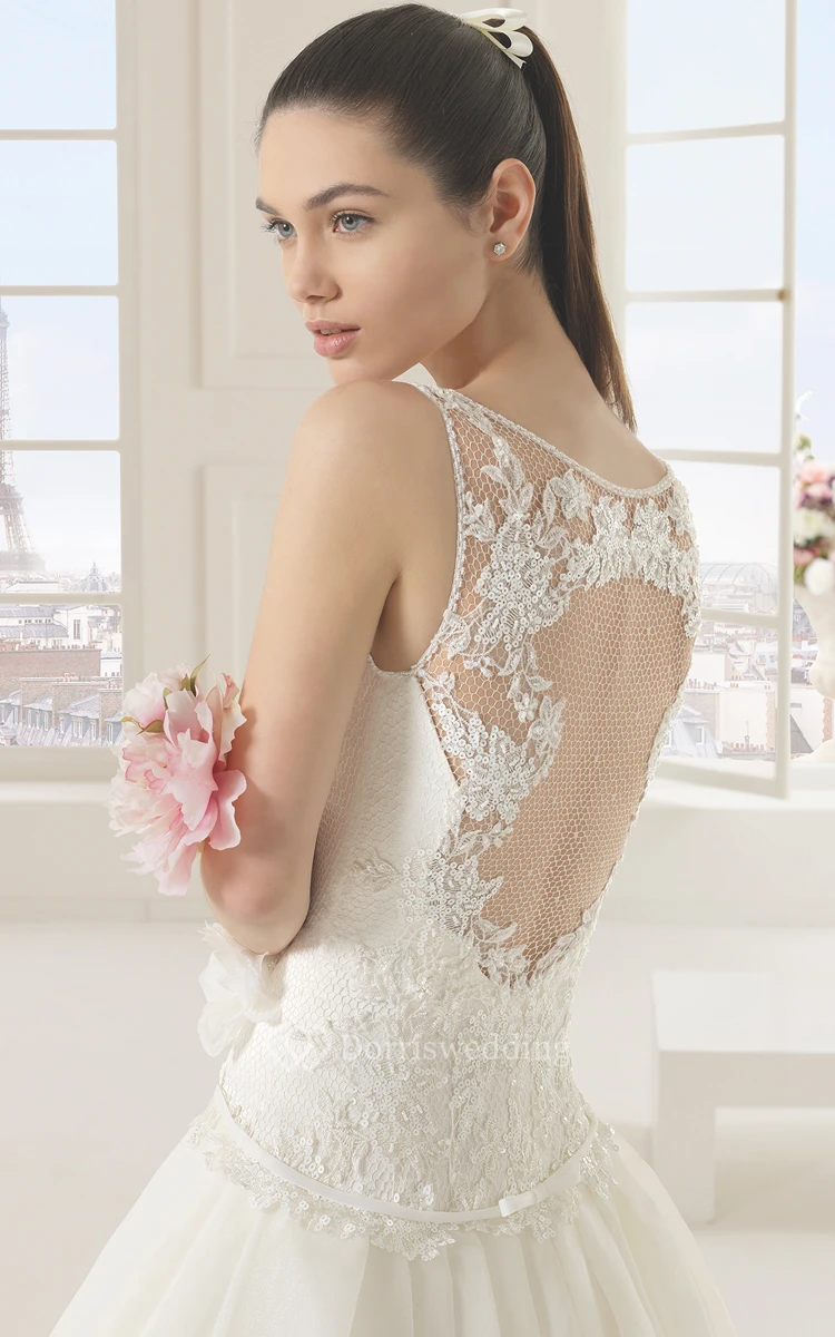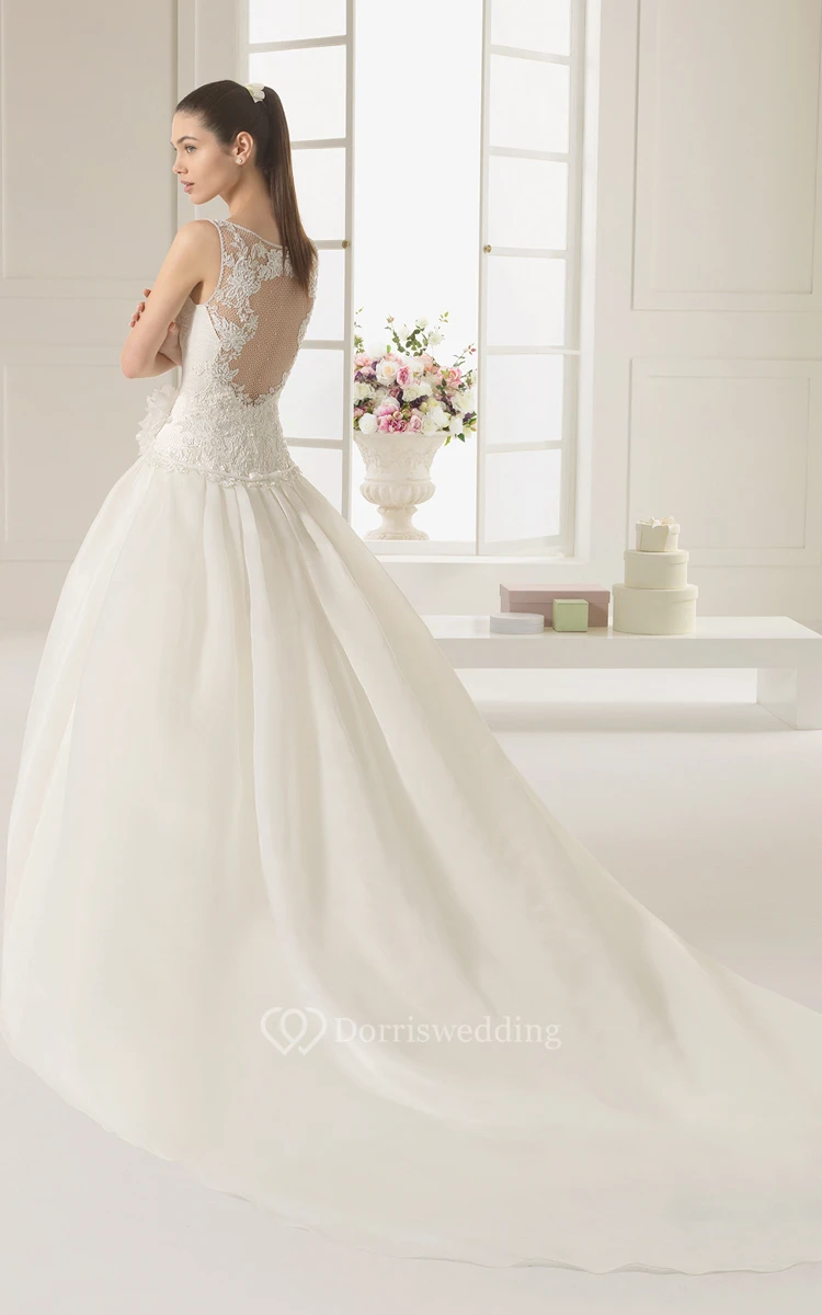 Stylish Ball Gown With Illusion Back And Dropped Waist