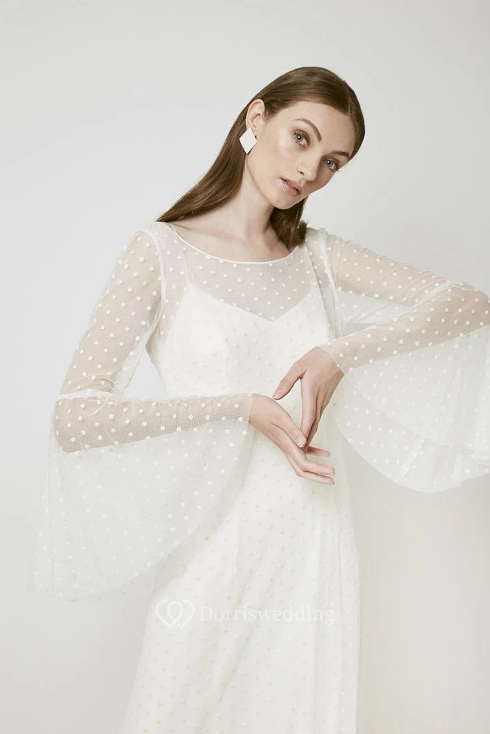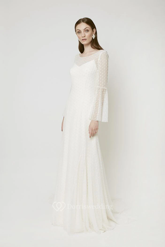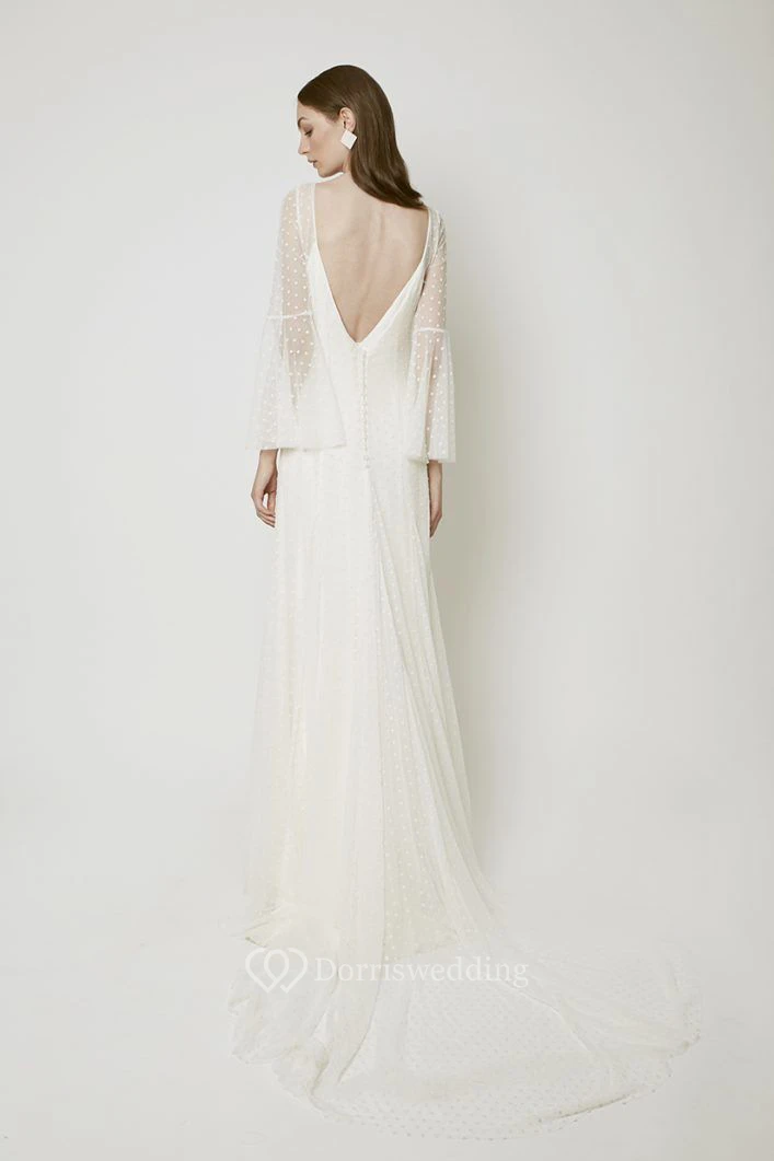 Stylish Long Bell Sleeve Deep V Back Bridal Gown