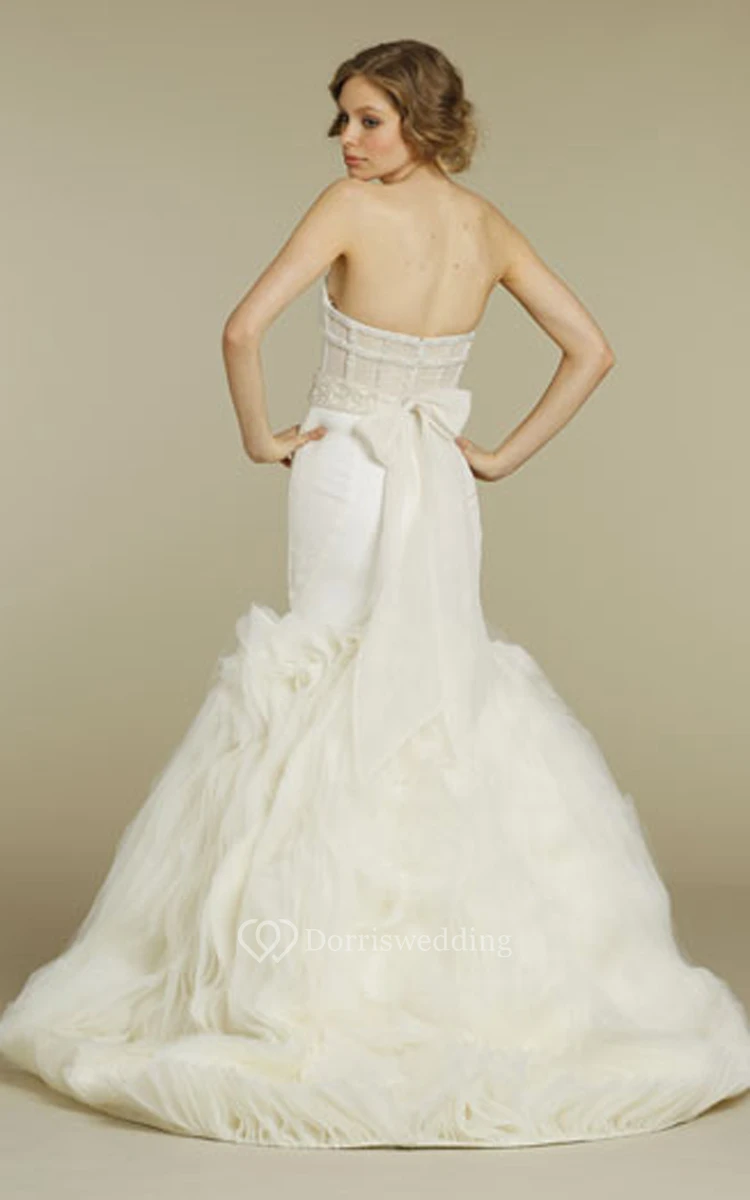Stylish Strapless Fit and Flare Organza Dress With Sheer Corset Back