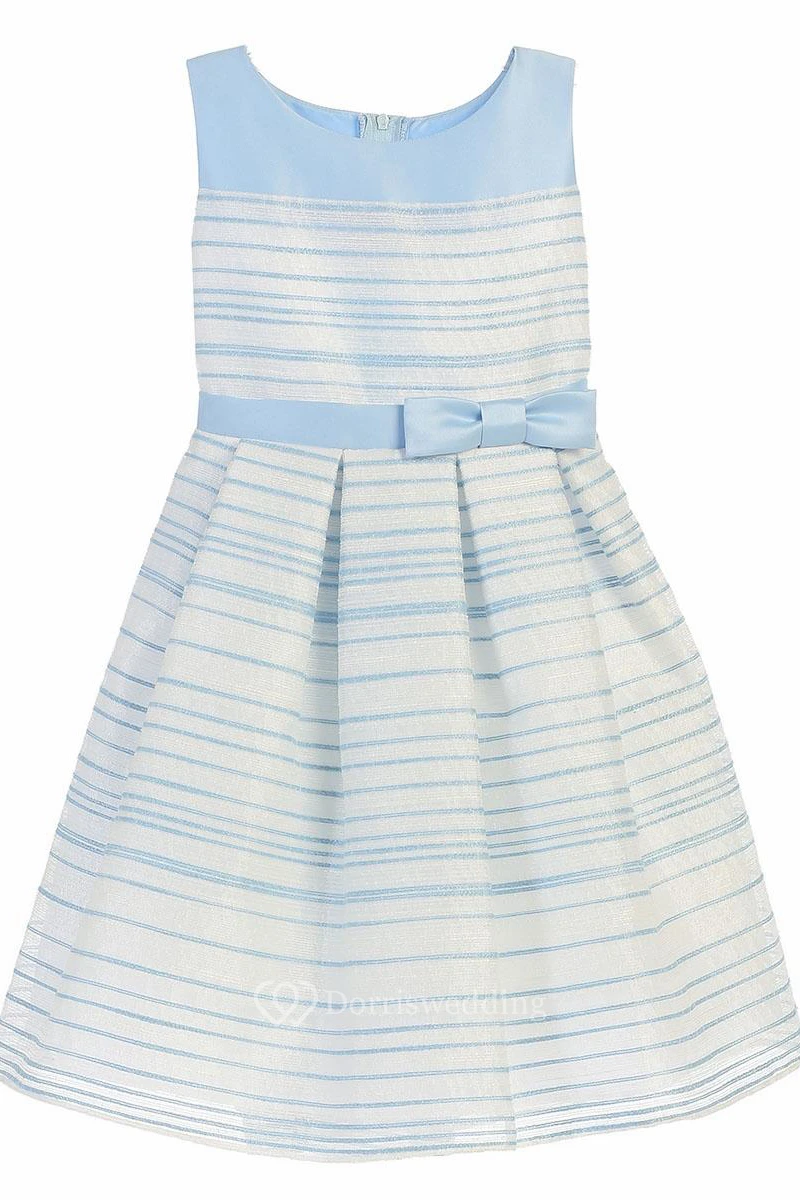 Knee-Length Tiered Pleated Satin Flower Girl Dress With Sash
