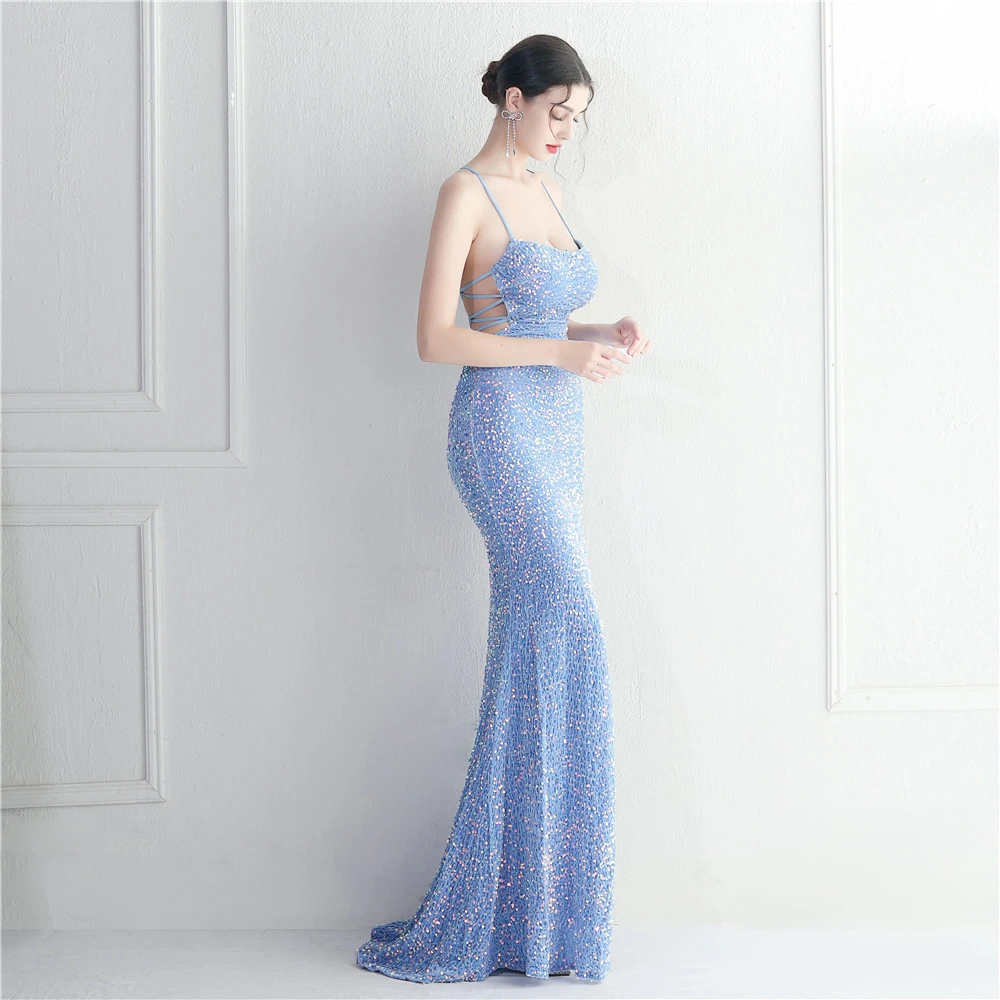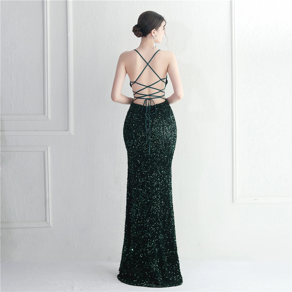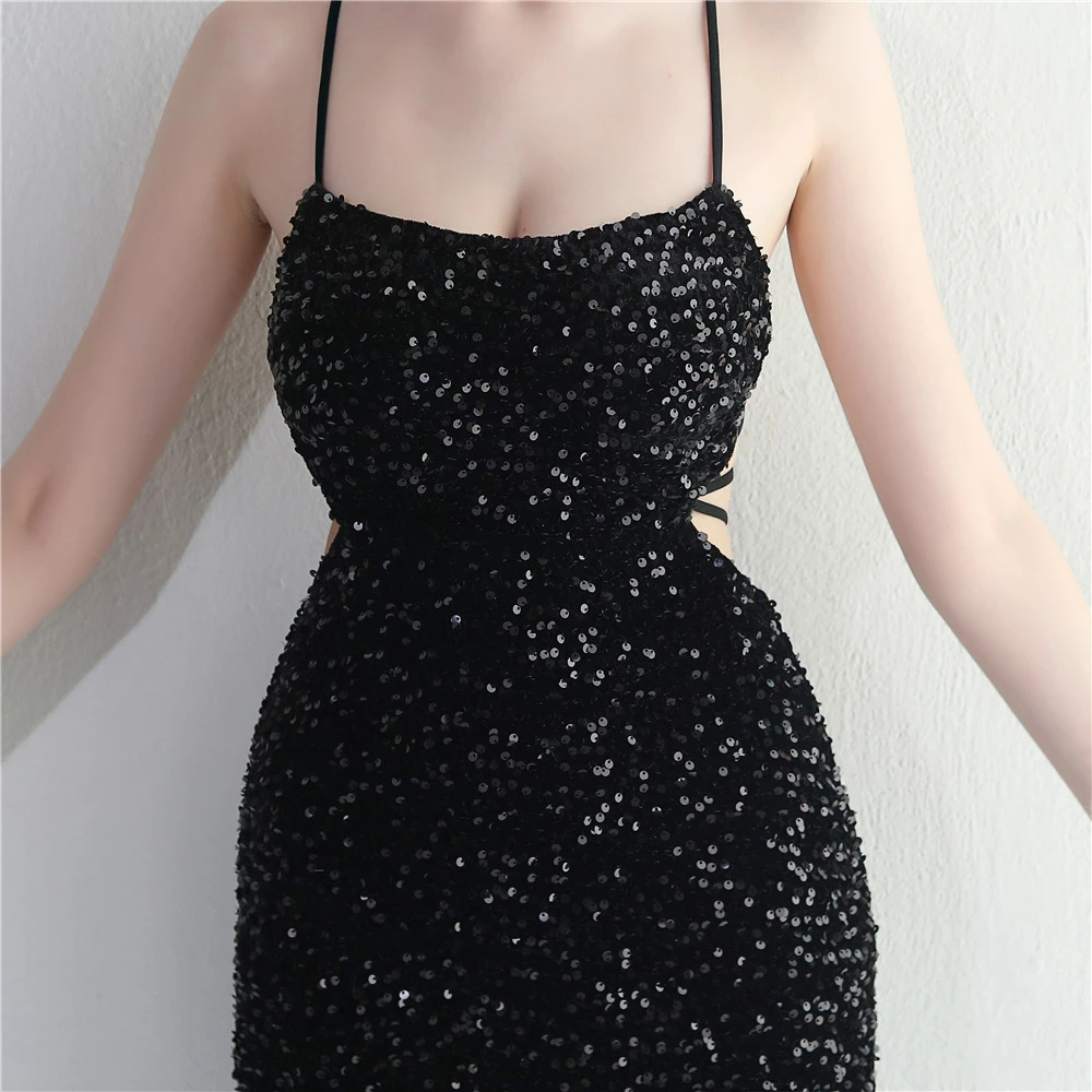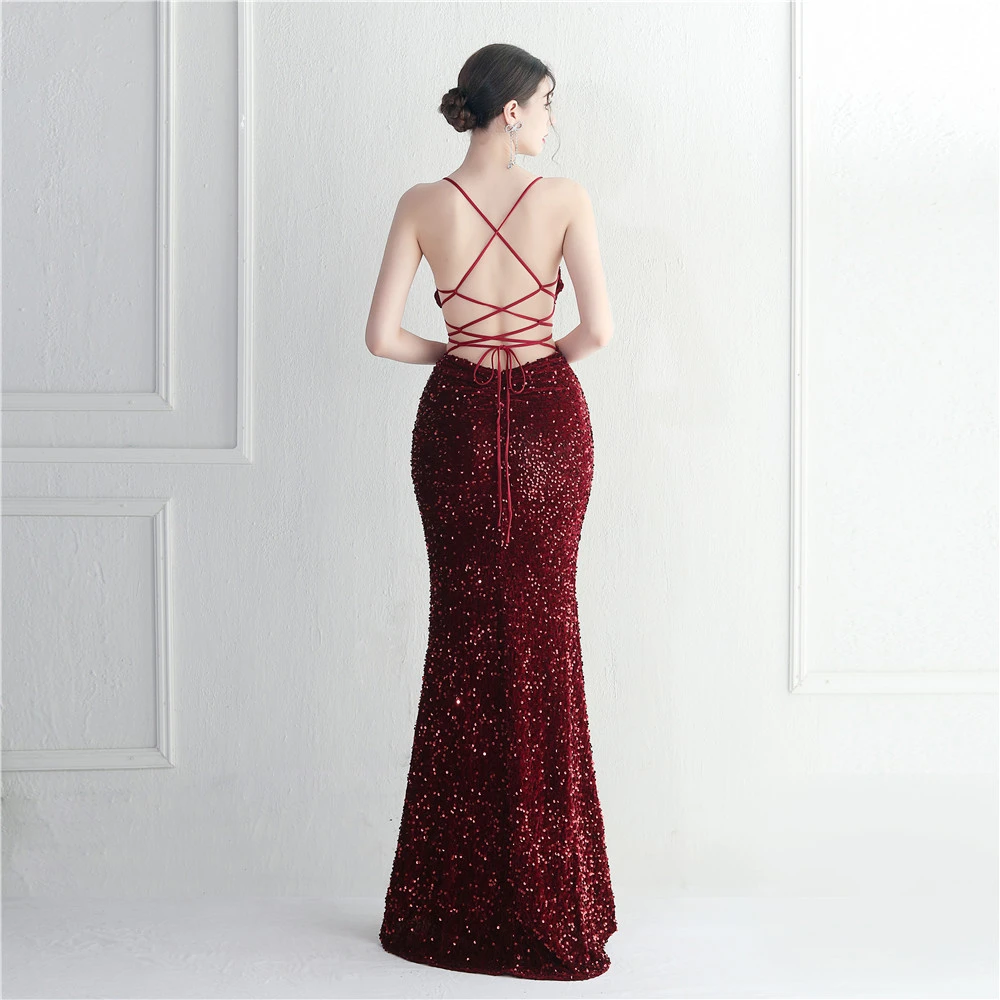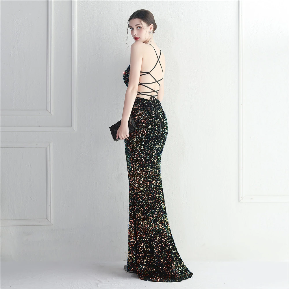 Supply Velvet Bottom Sequin European And American Halter Neck Sling Nightclub Dress Long Fishtail Evening Dress