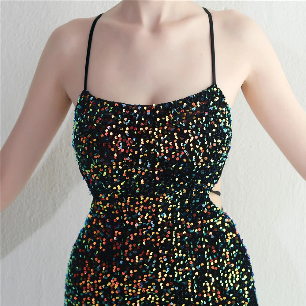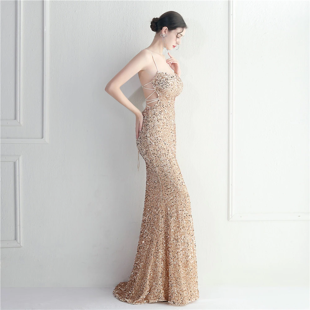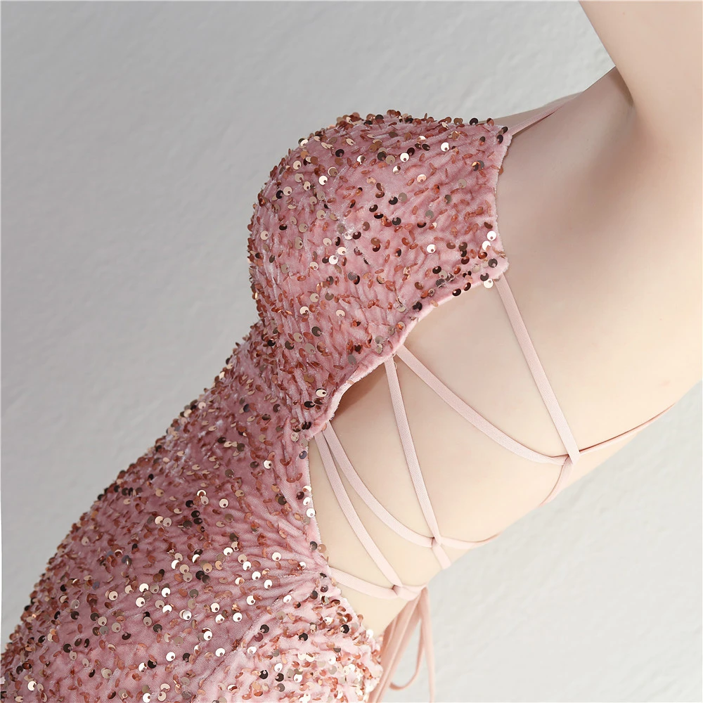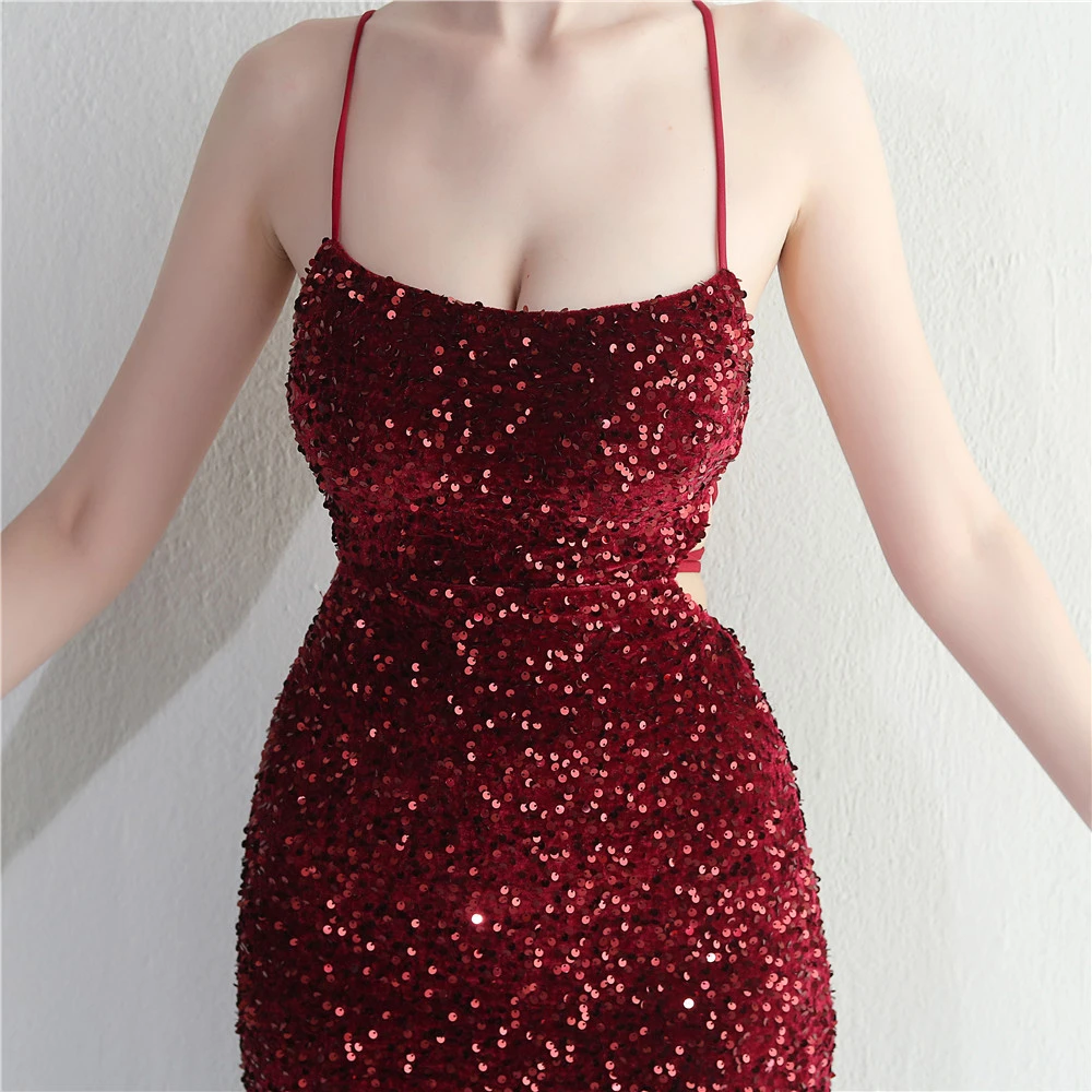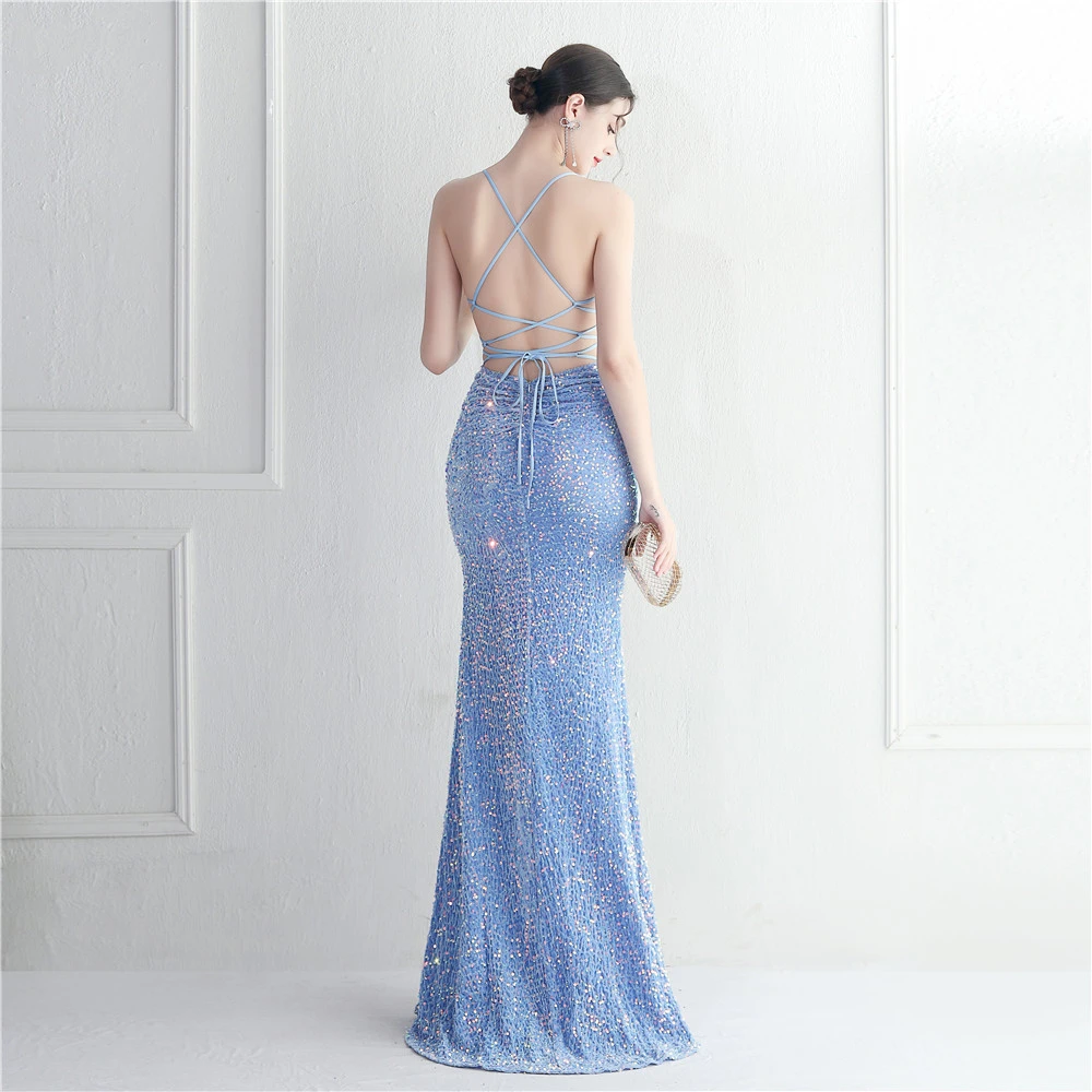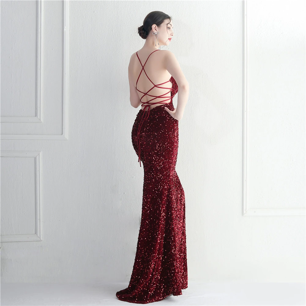 Supply Velvet Bottom Sequin European And American Halter Neck Sling Nightclub Dress Long Fishtail Evening Dress