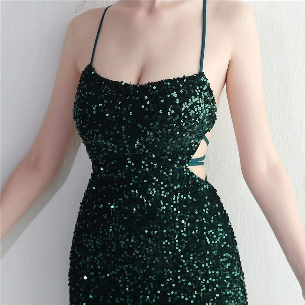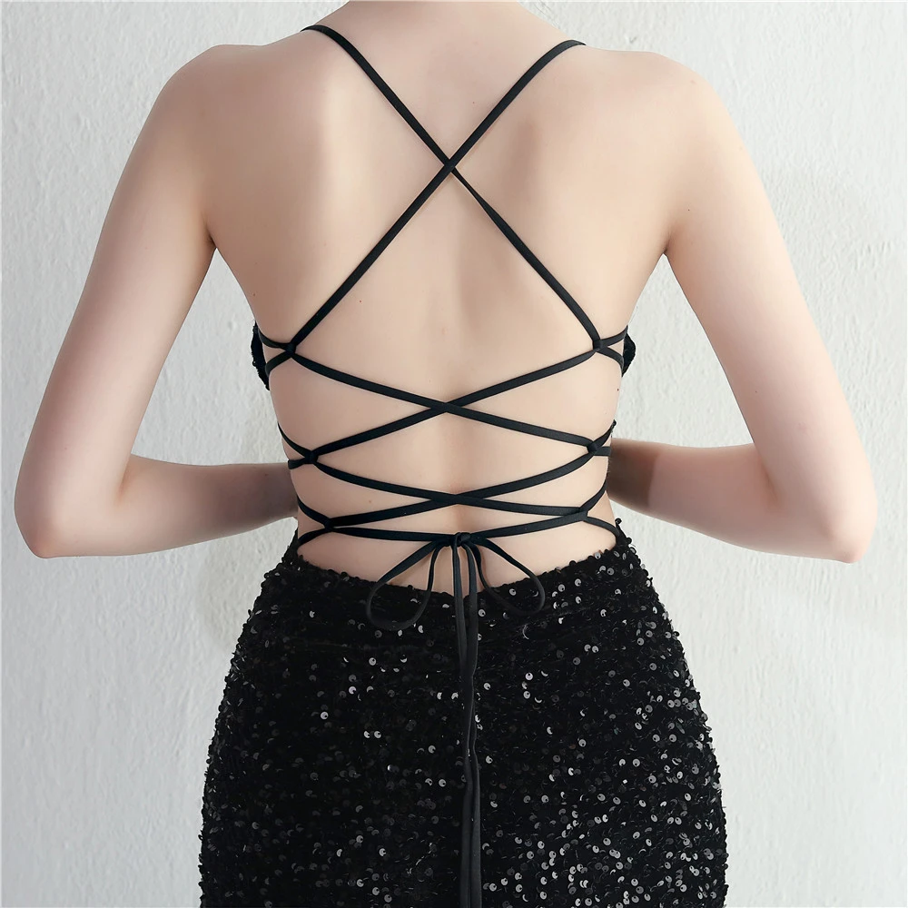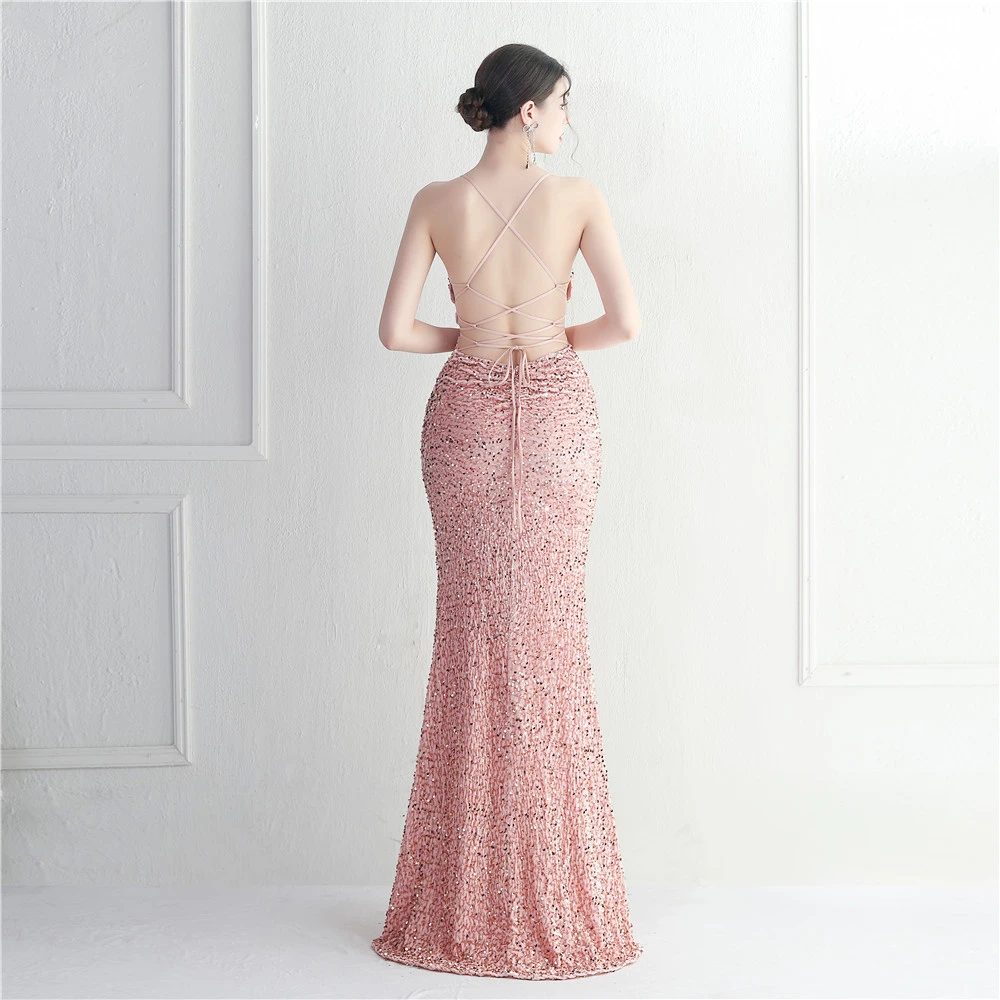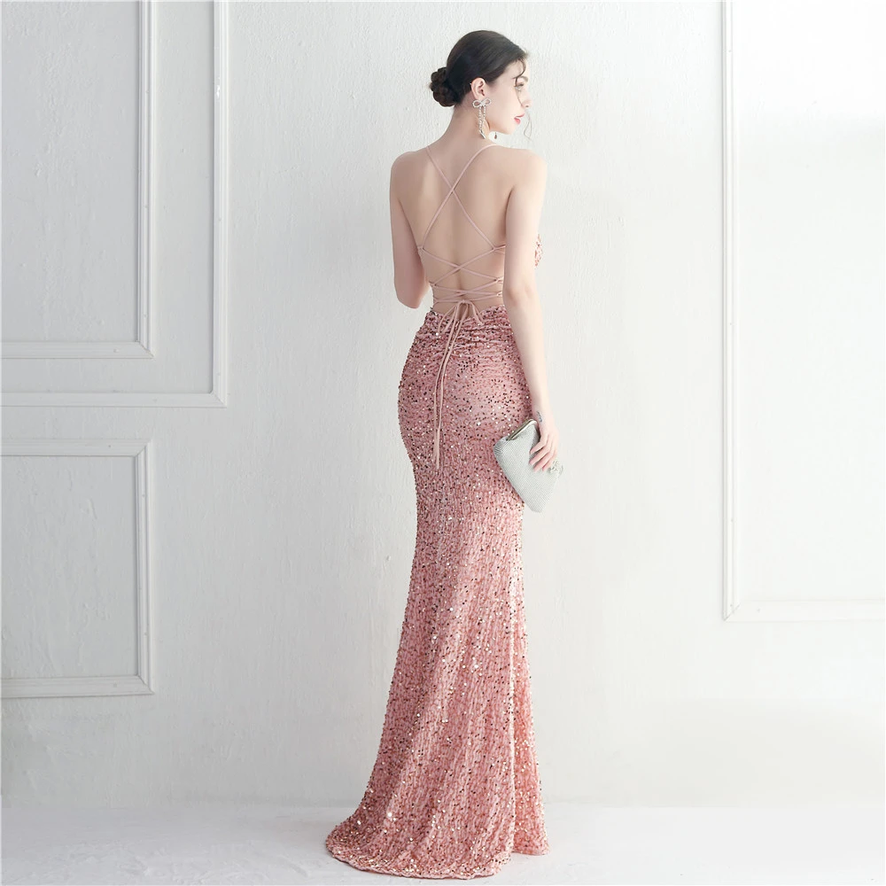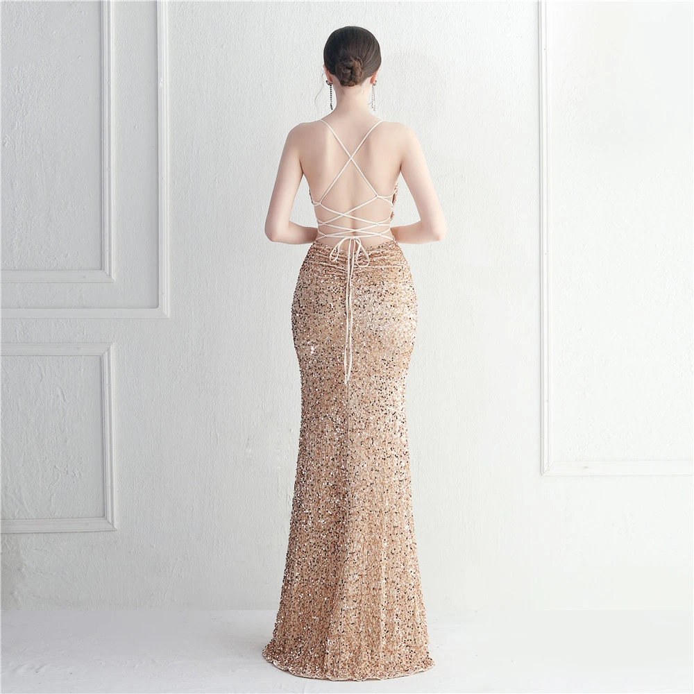 Supply Velvet Bottom Sequin European And American Halter Neck Sling Nightclub Dress Long Fishtail Evening Dress