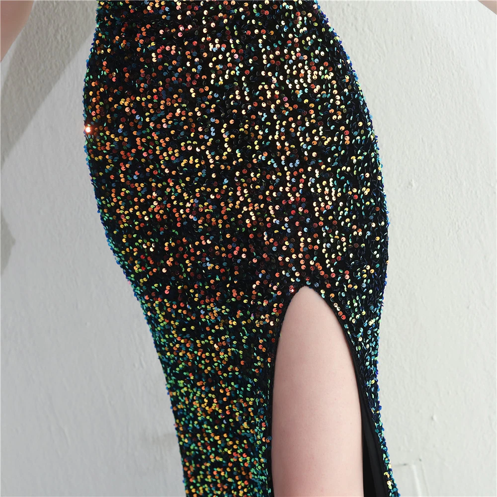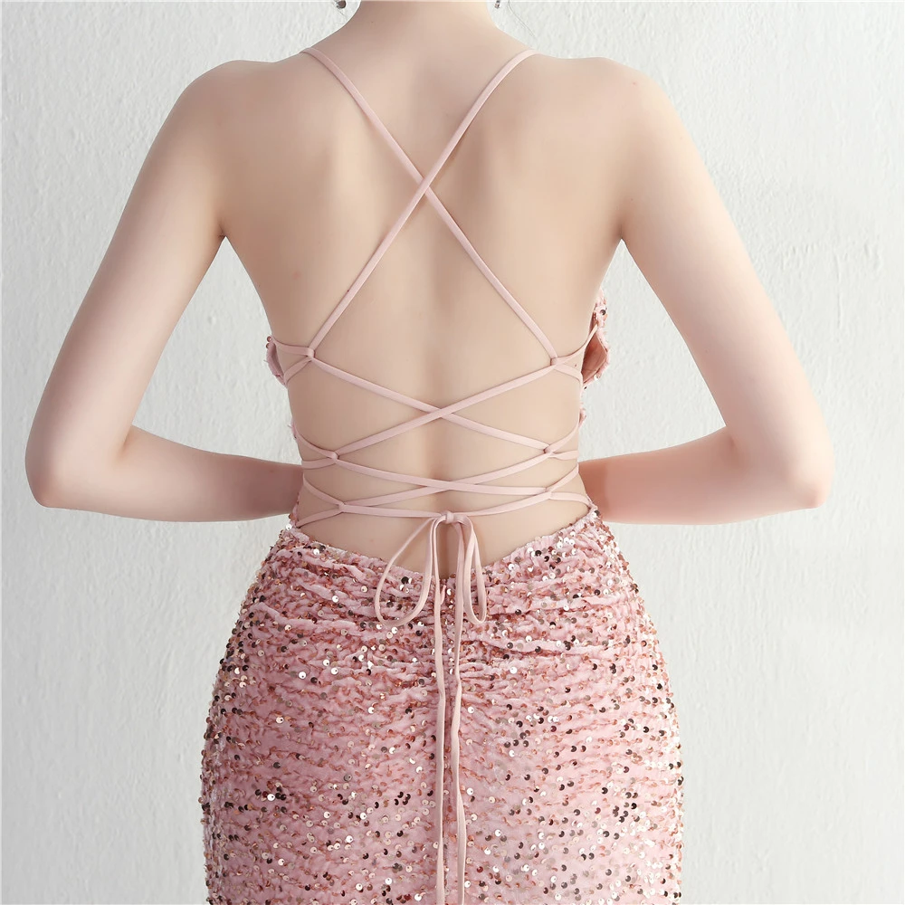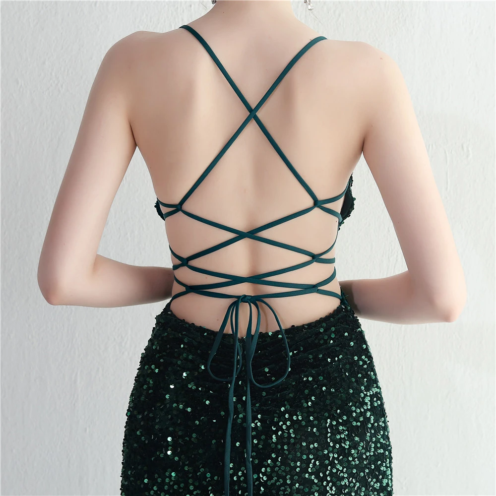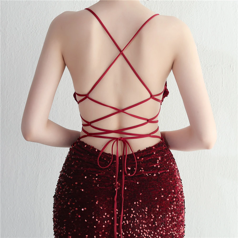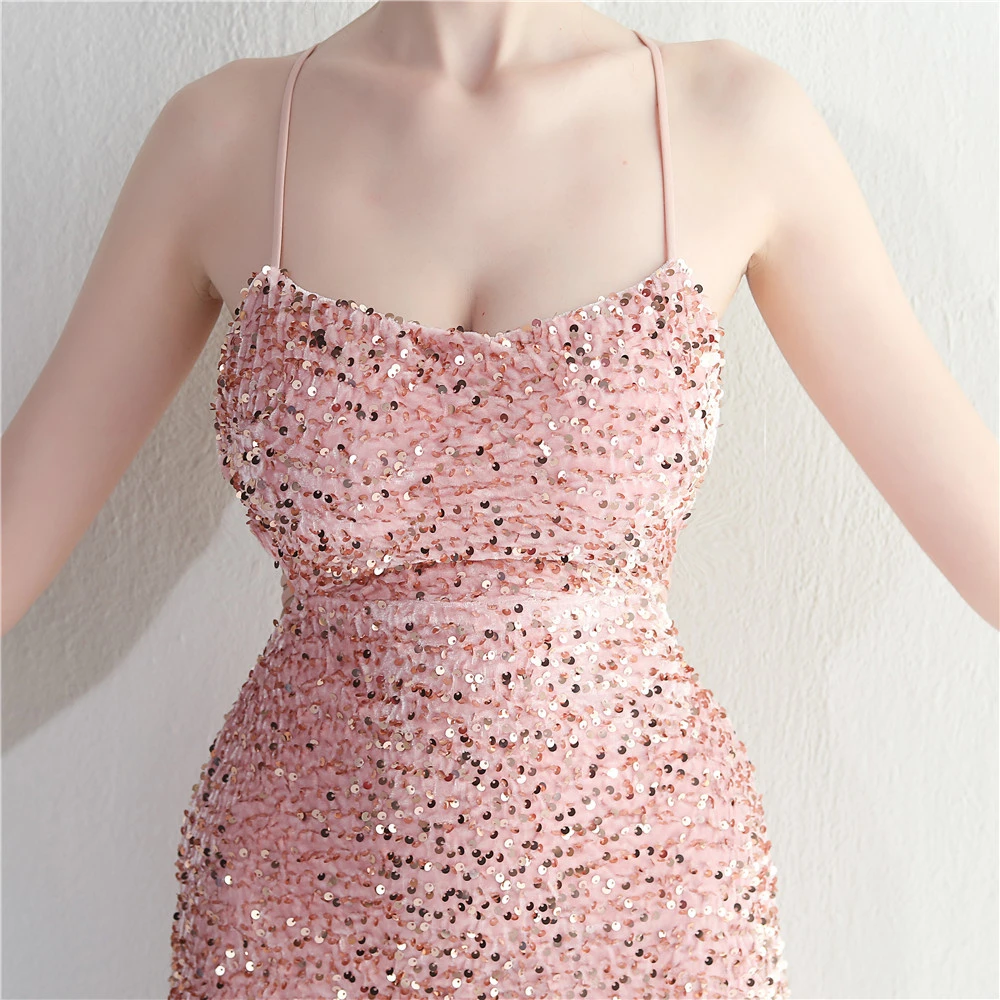 Supply Velvet Bottom Sequin European And American Halter Neck Sling Nightclub Dress Long Fishtail Evening Dress