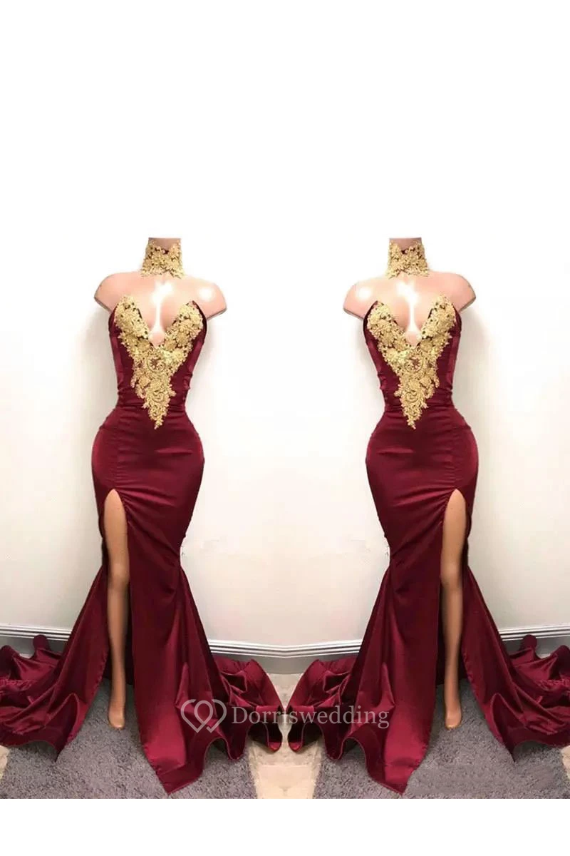 Sweep Brush Train Sleeveless Taffeta Sexy Bodycon Notched Tall Women Appliques Split Front Dress