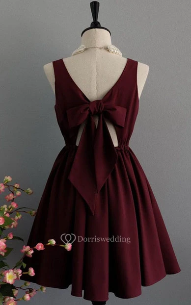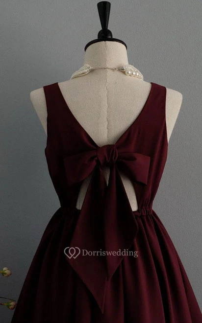 Sweet Sleeveless A-line Satin Dress With Bow