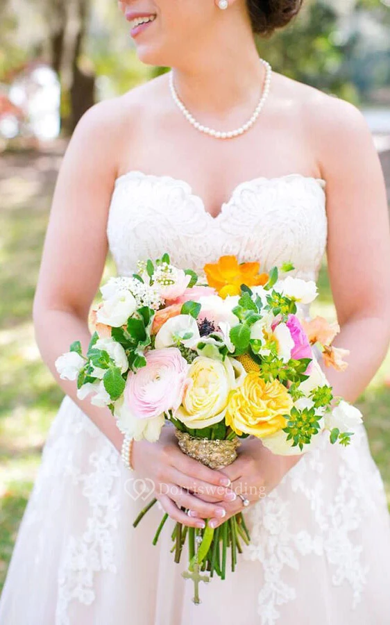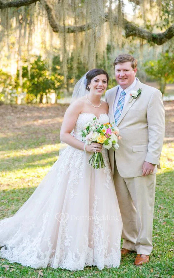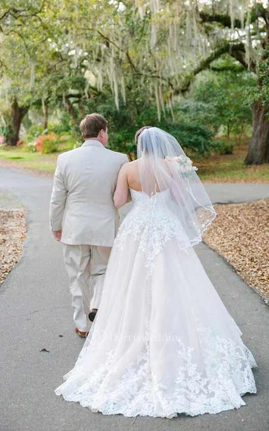 Sweetheart A-line Ball Gown Applique Plus Size Backless Lace Wedding Dress
