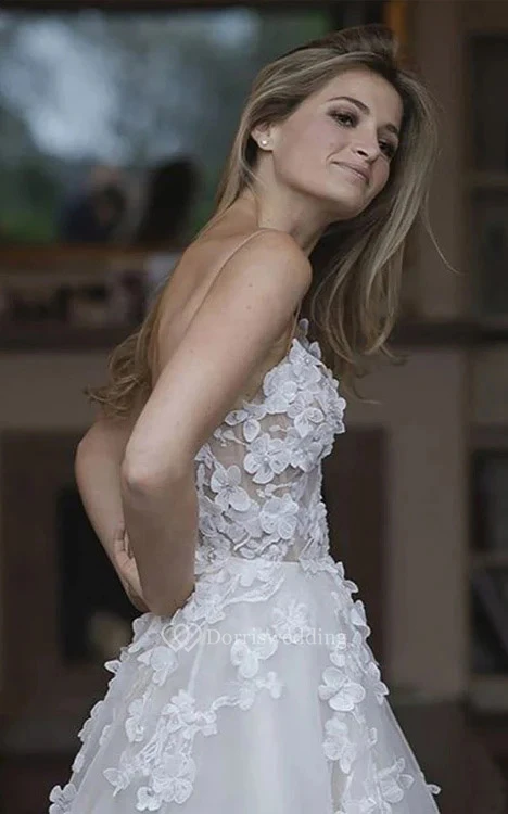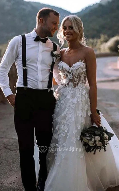 Sweetheart A-line Ball Gown Applique Tulle Lace Wedding Dress