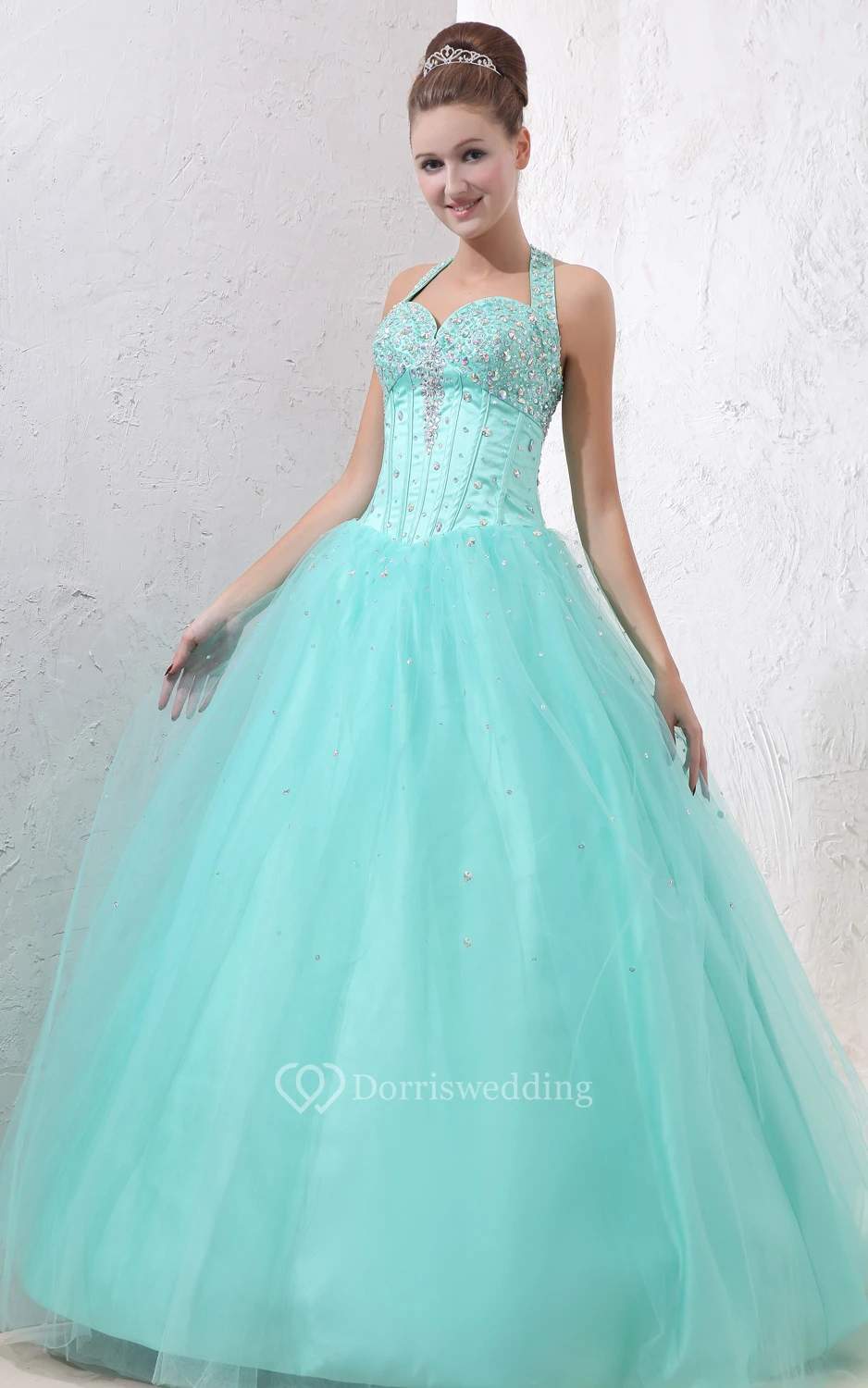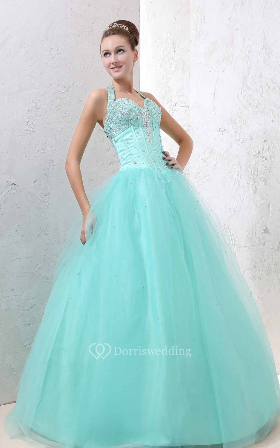 Sweetheart A-Line Ball Gown With Beaded Top and Tulle Overlay
