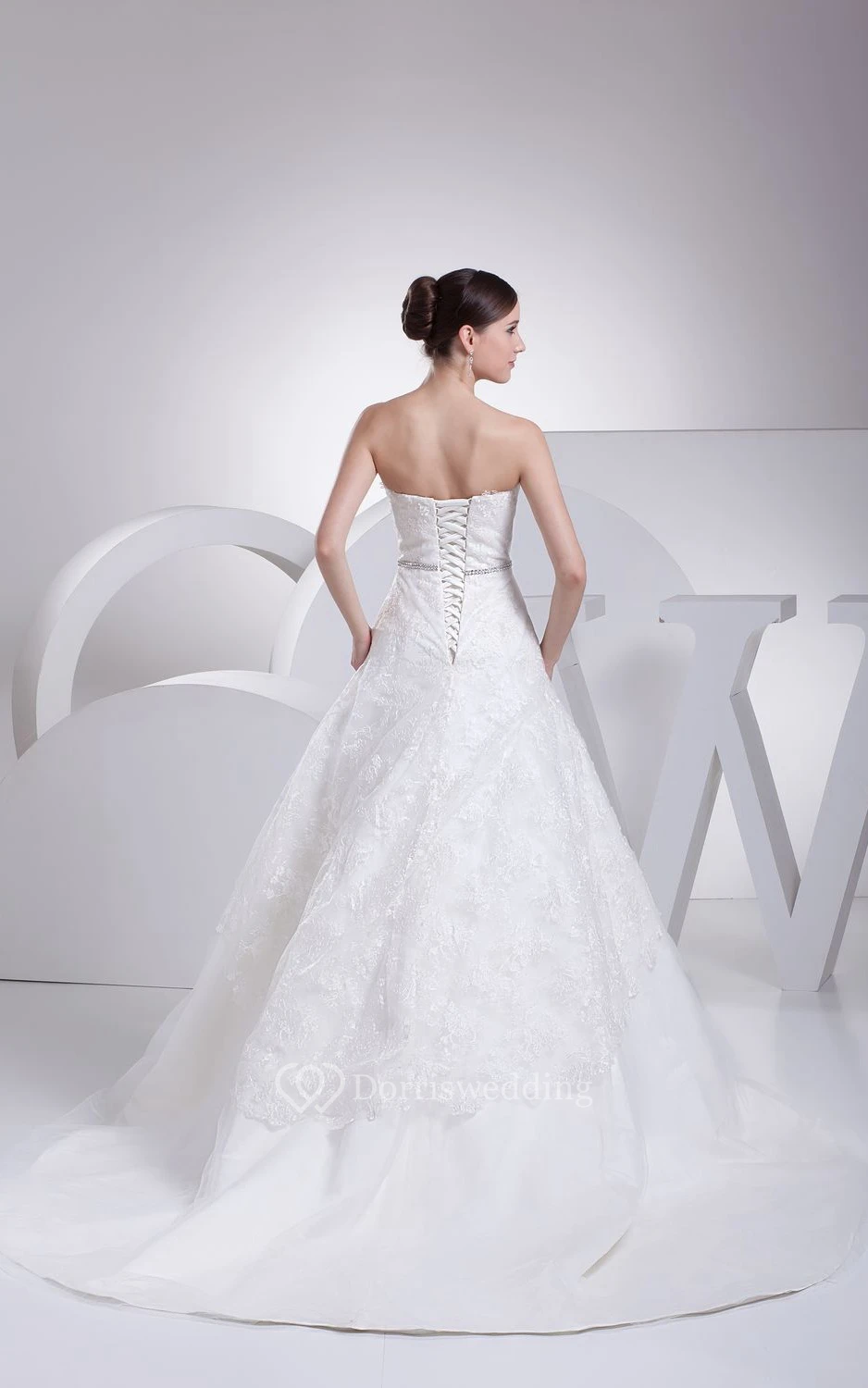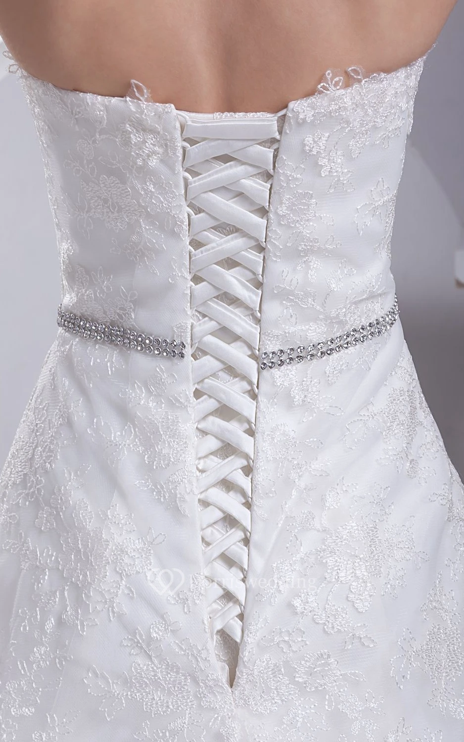 Sweetheart A-Line Ball Gown With Beaded Waist and Lace Appliques