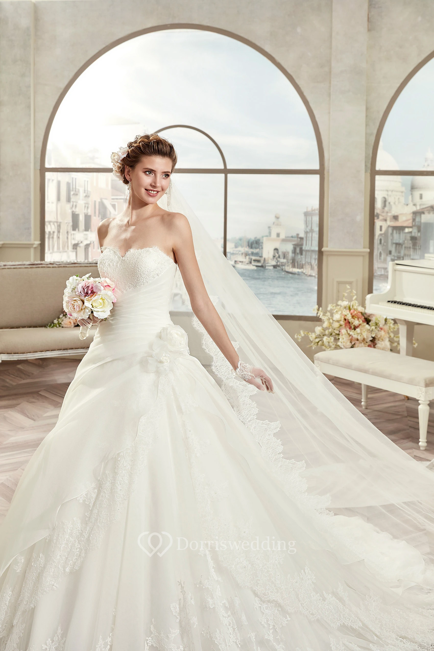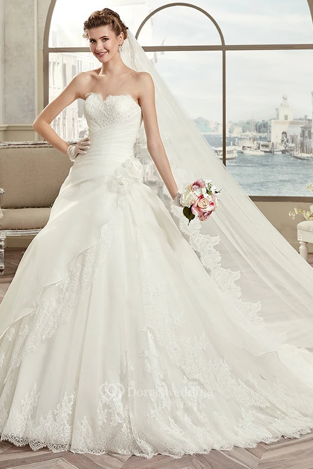 Sweetheart A-Line Bridal Gown With Bandage Waist And Asymmetrical Ruffles