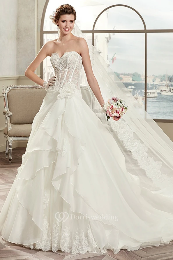 Sweetheart A-Line Bridal Gown With Lace Corset And Asymmetrical Ruffles