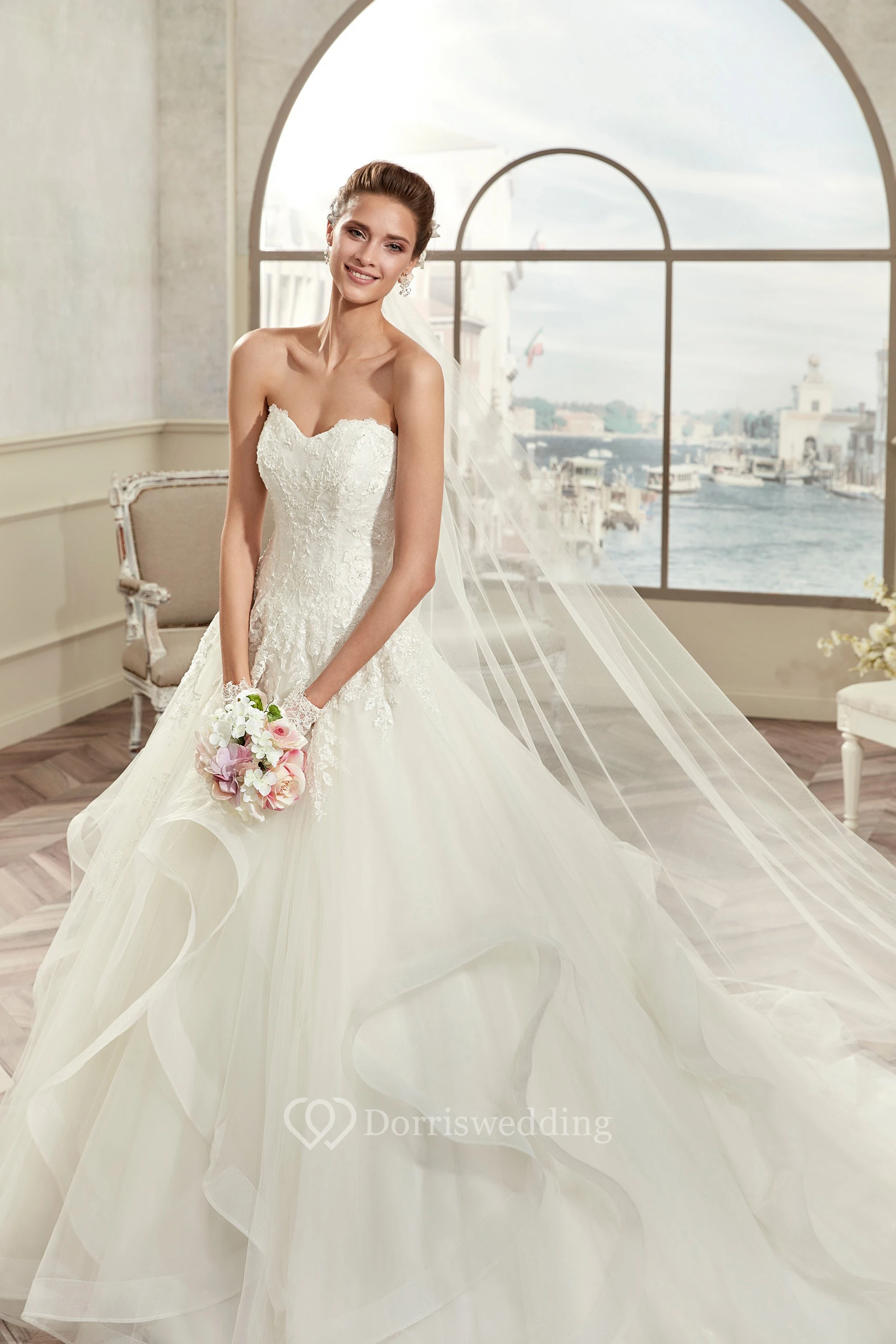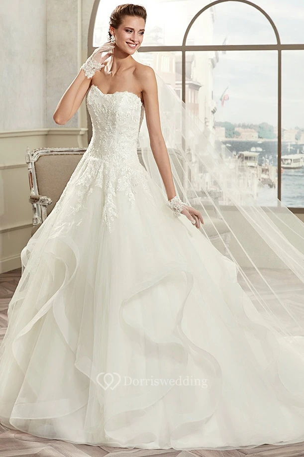 Sweetheart A-Line Bridal Gown With Ruffles And Open Back