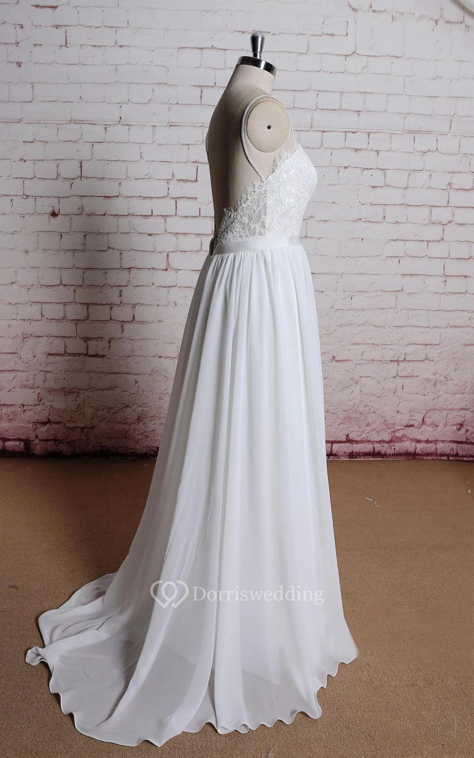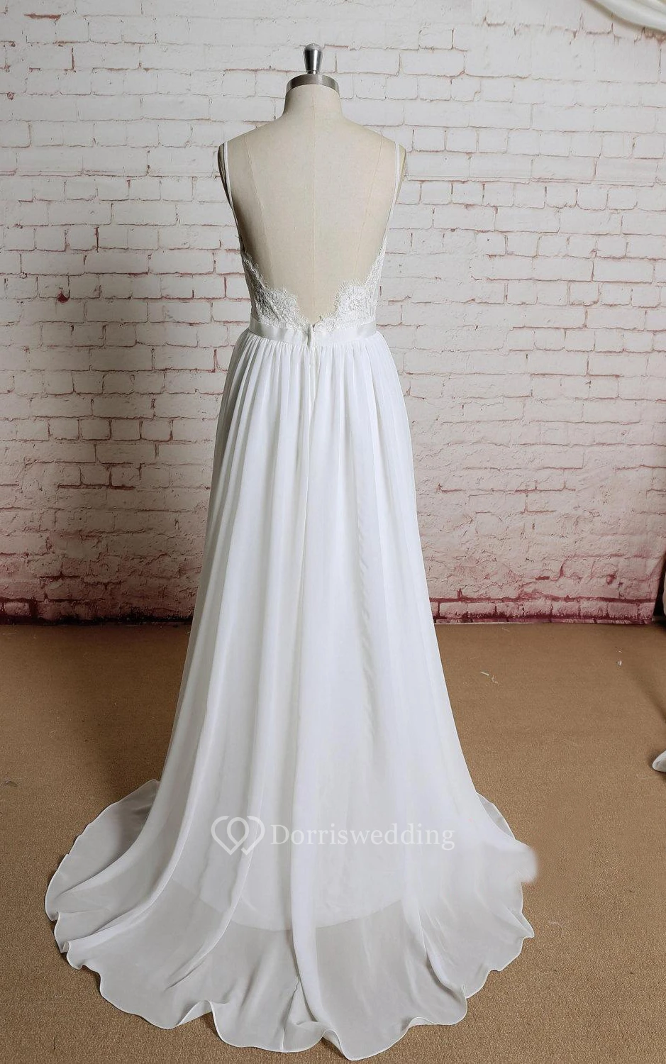 • Hemline/Train: Floor-length, Sweep/Brush Train