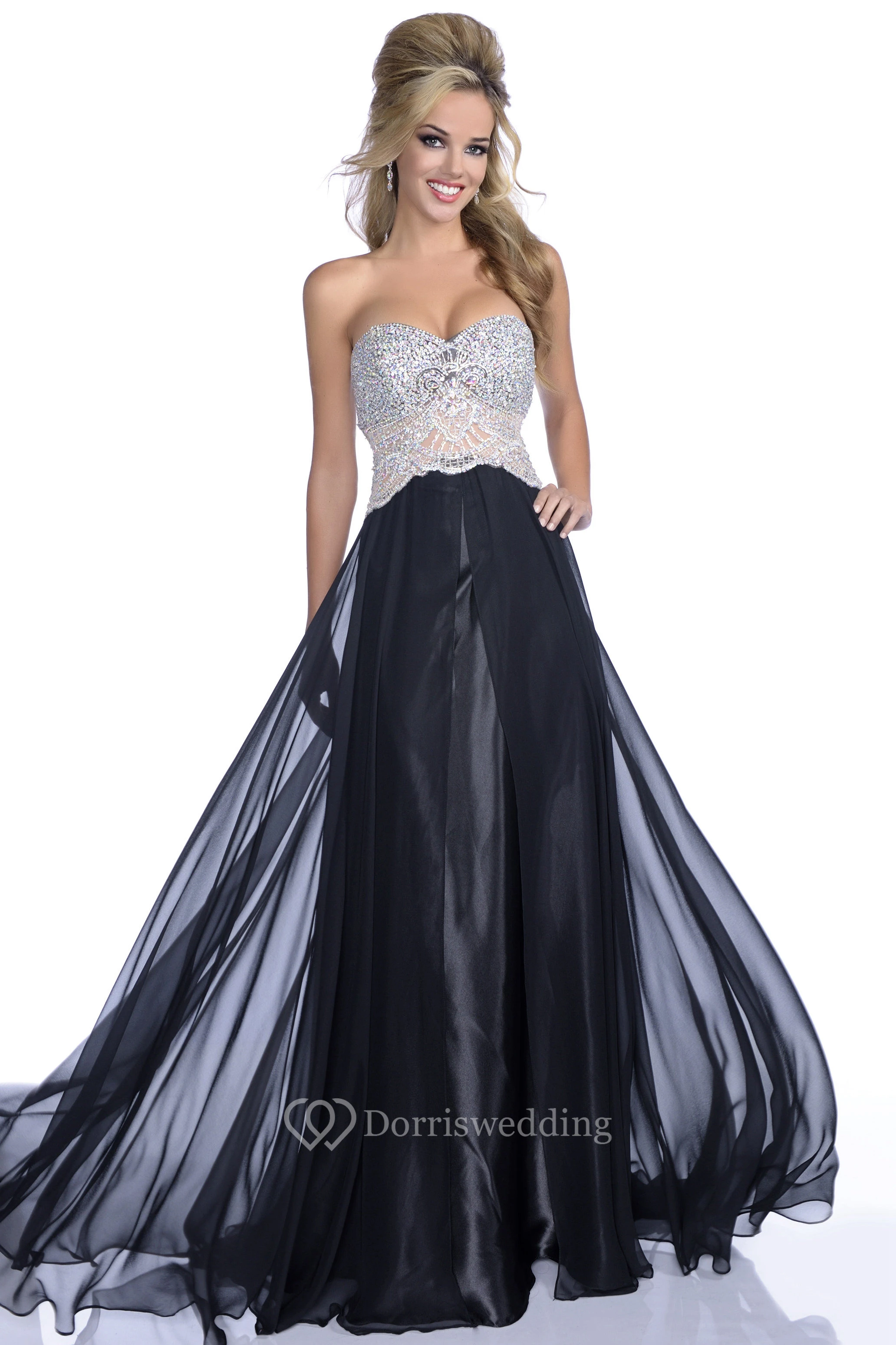 Sweetheart A-Line Chiffon Gown With Rhinestone Bodice