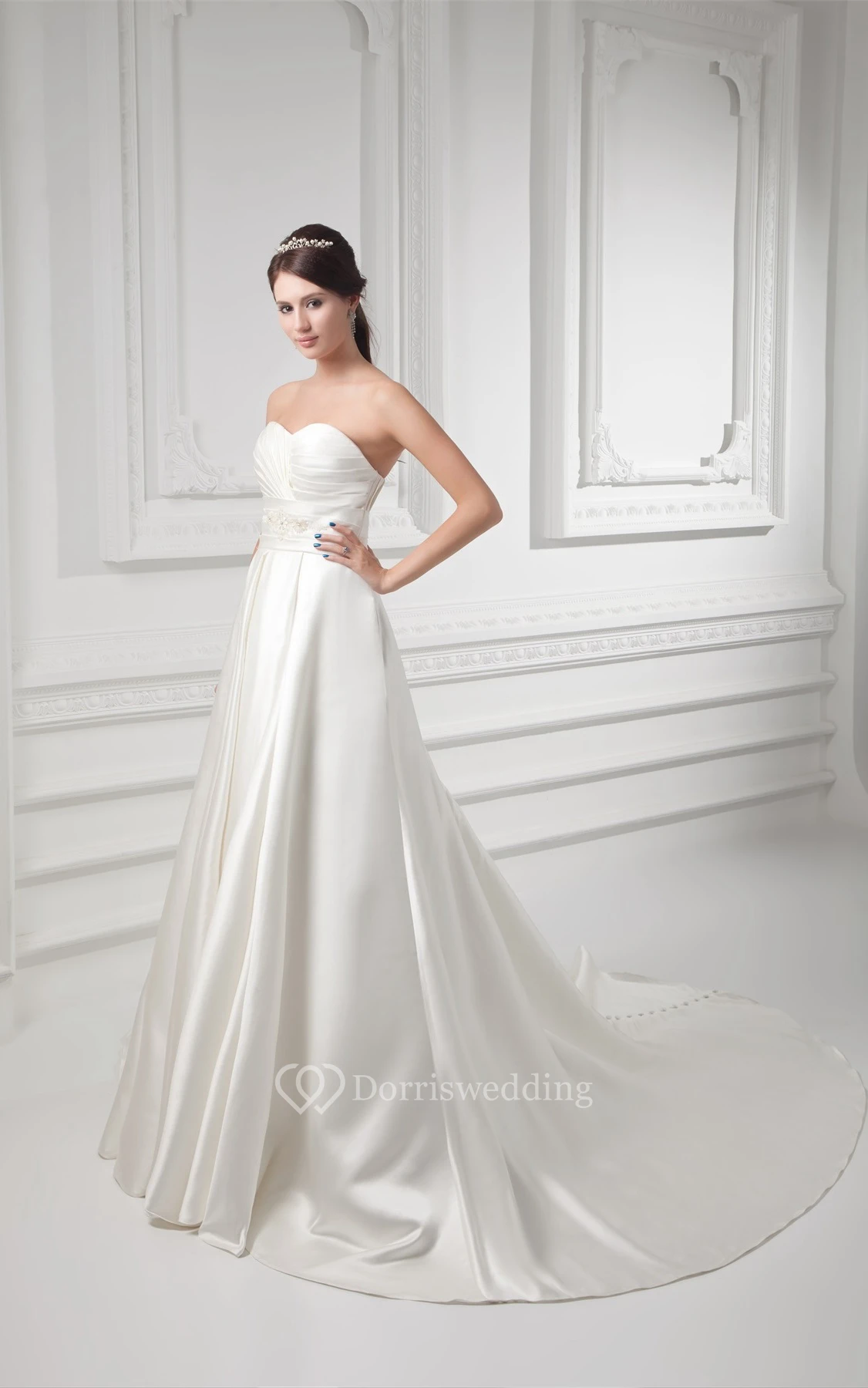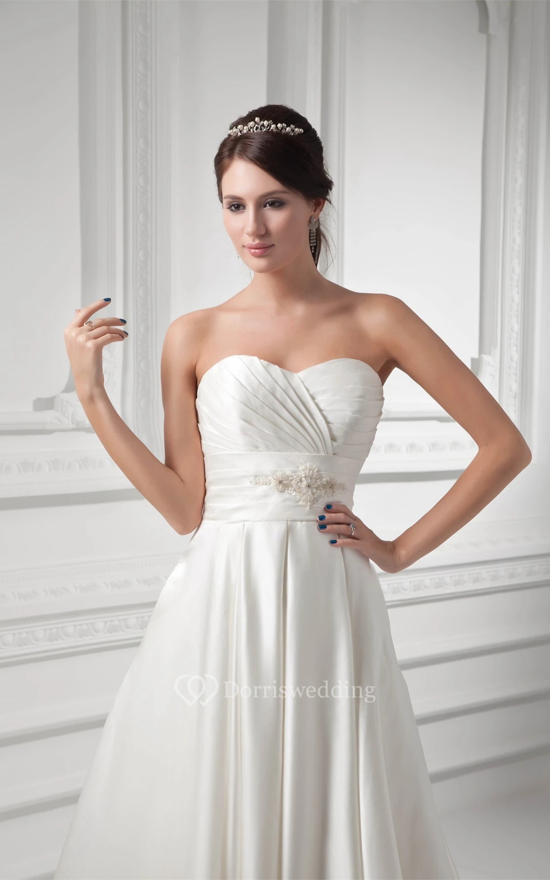 Sweetheart A-Line Criss-Cross Broach and Gown With Pleats