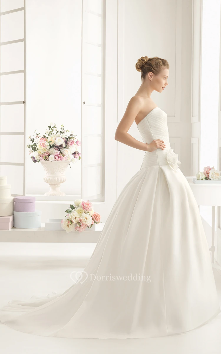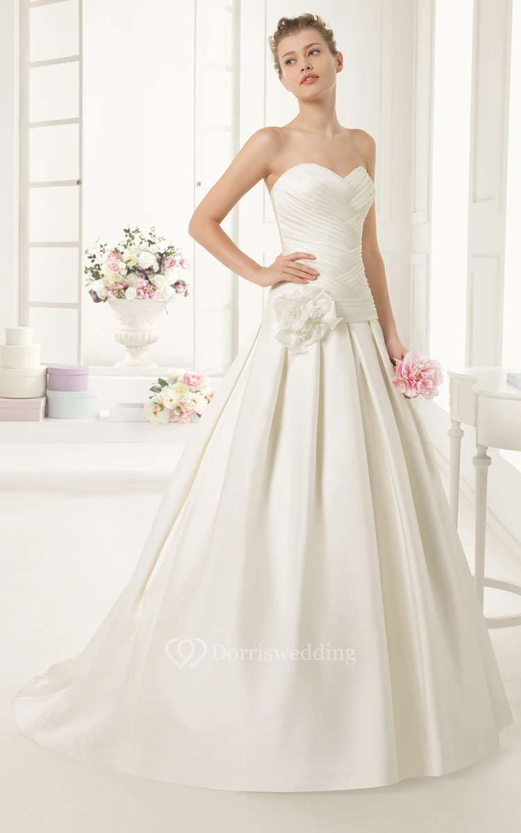 Sweetheart A-line Dress With Flower Sash And Crisscross Rushing