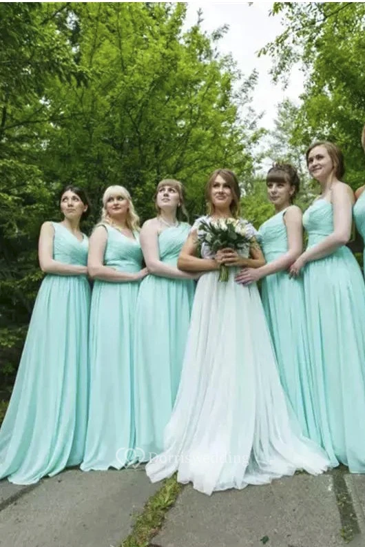 Sweetheart A-line Floor-length Sleeveless Chiffon Bridesmaid Dress with Zipper Back