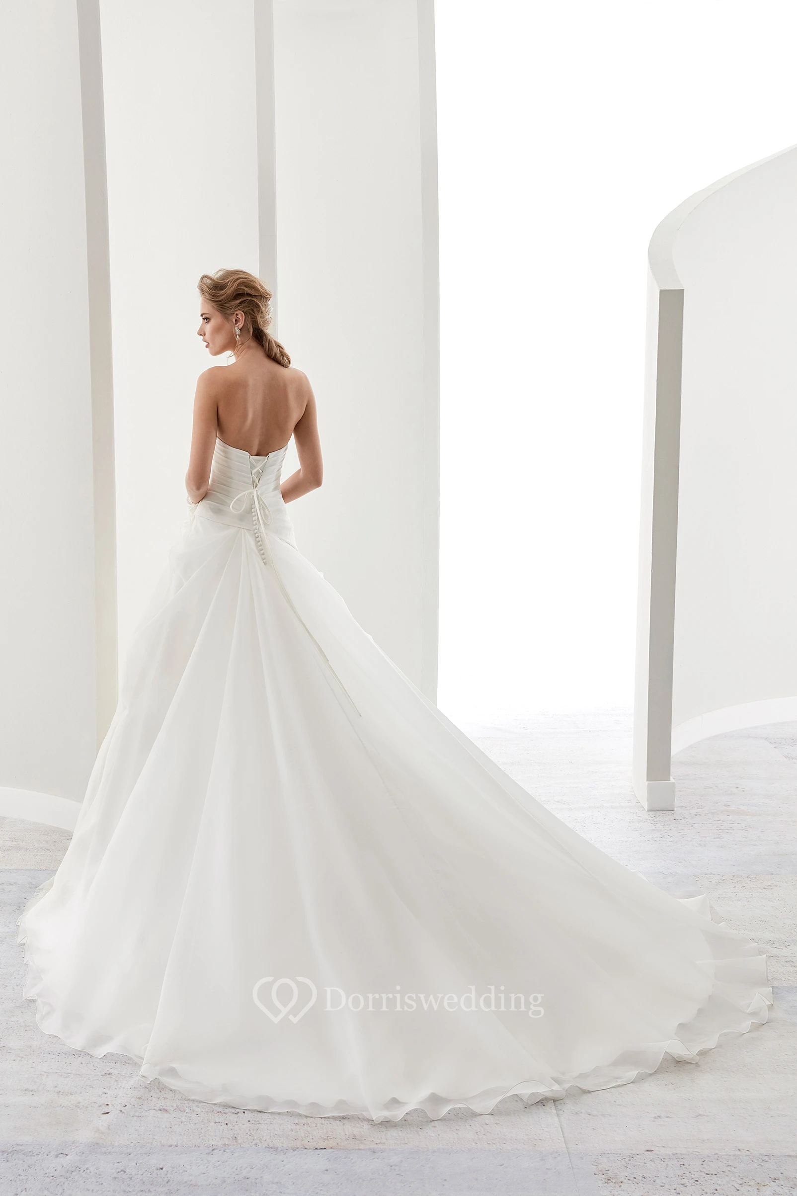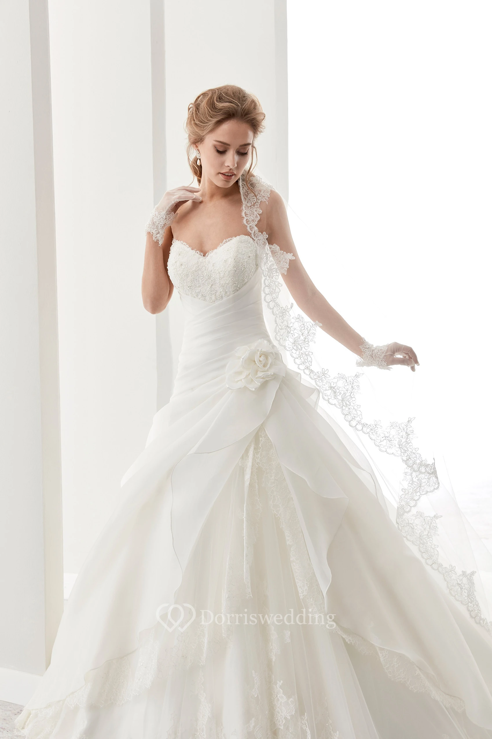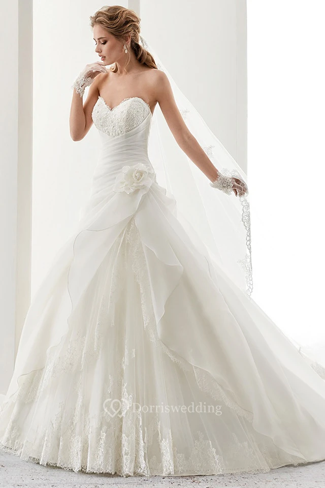 Sweetheart A-line Gown with Bandage Waist and Side Flower Ruffles