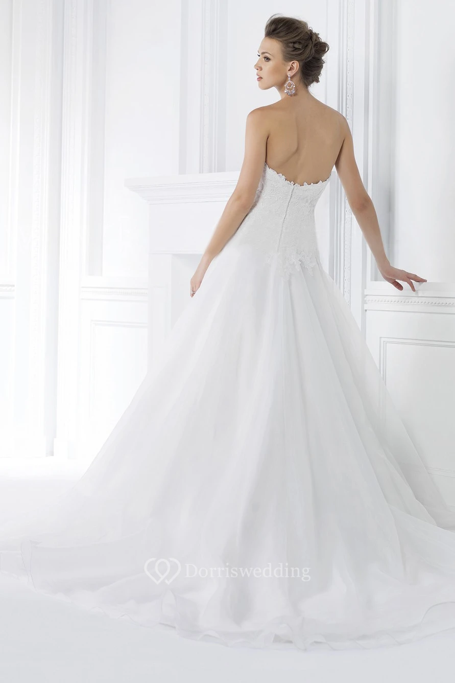 Sweetheart A-Line Gown With Lace Detail Bodice And Beadings