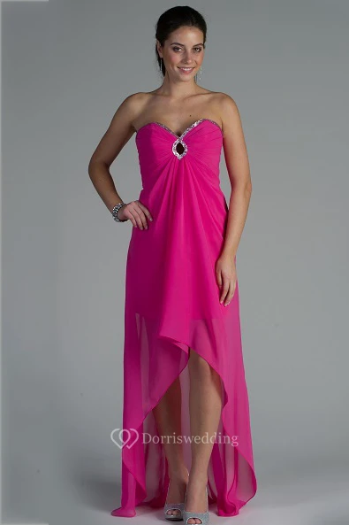Sweetheart A-Line High Low Chiffon Bridesmaid Dress With Sequined Front Keyhole