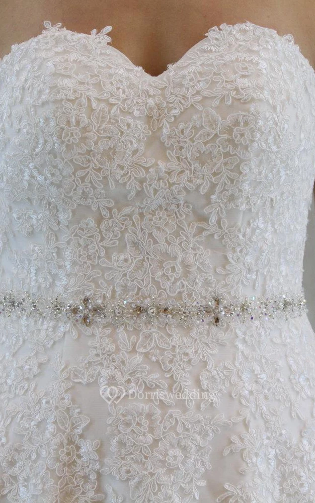 Sweetheart A-Line Lace and Tulle Dress With Beaded Waist