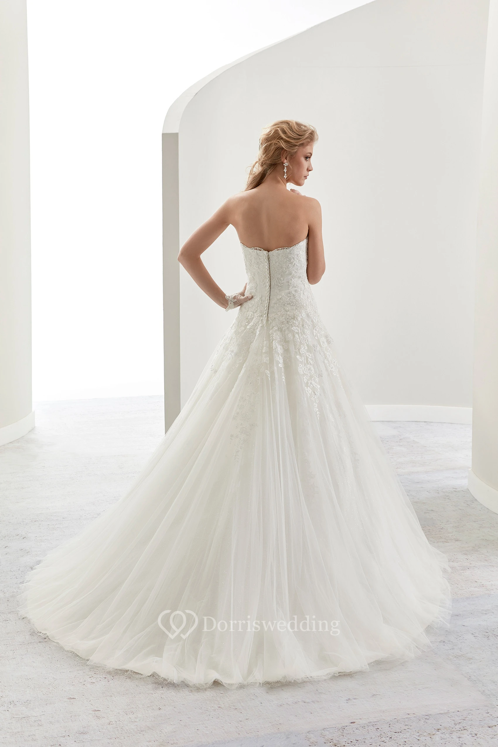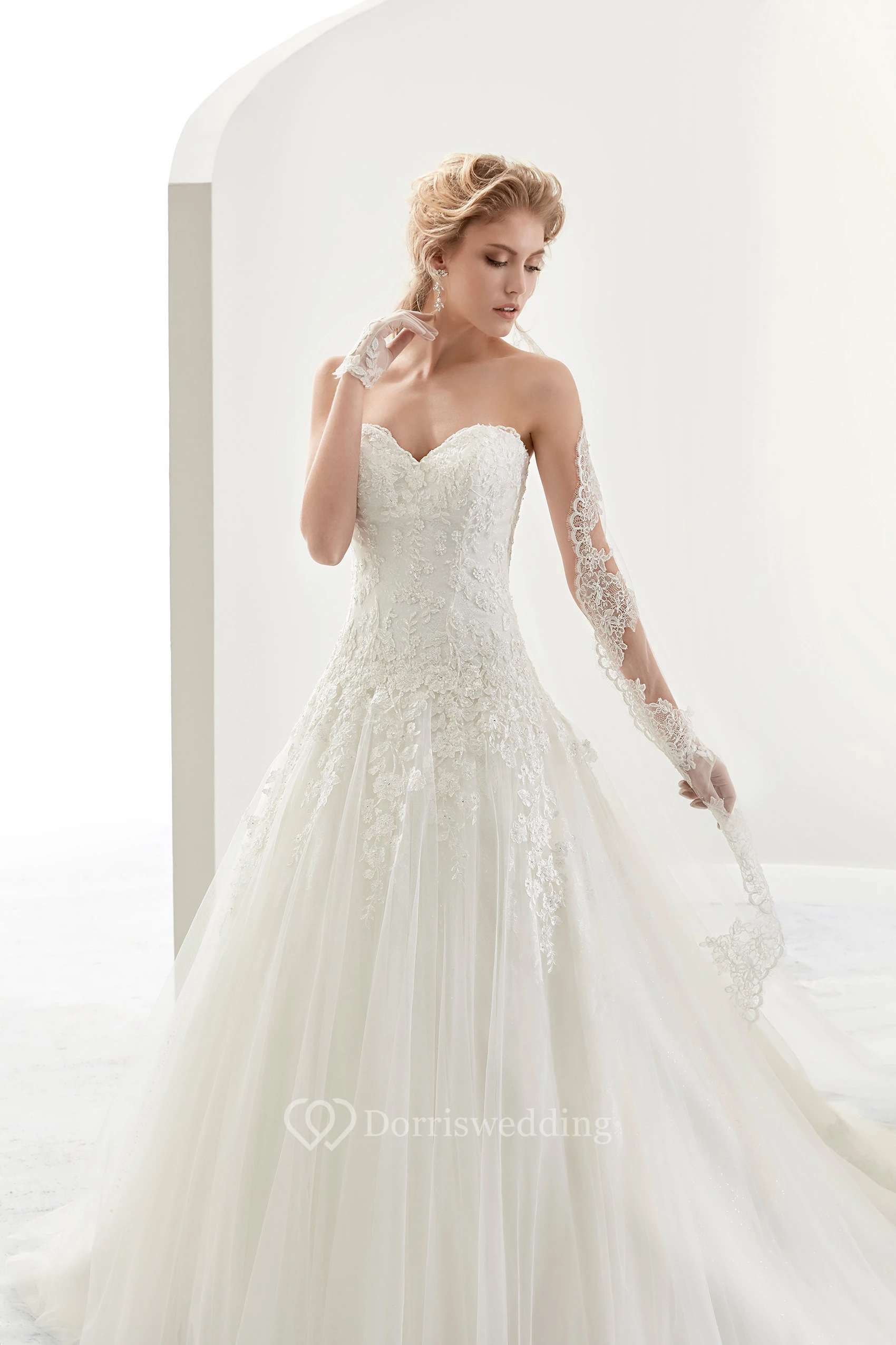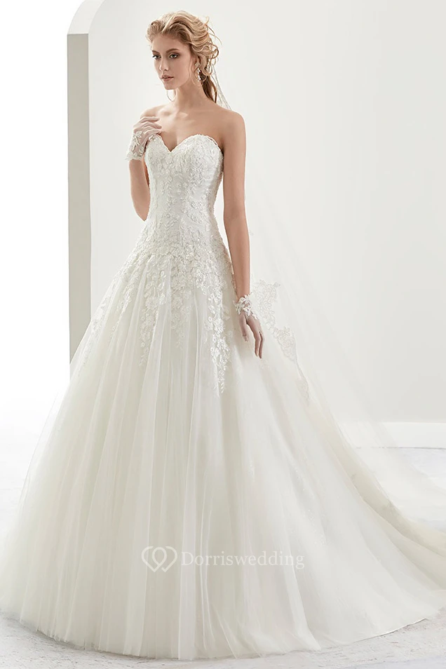 Sweetheart A-Line Lace Bridal Gown With Appliques And Half Back