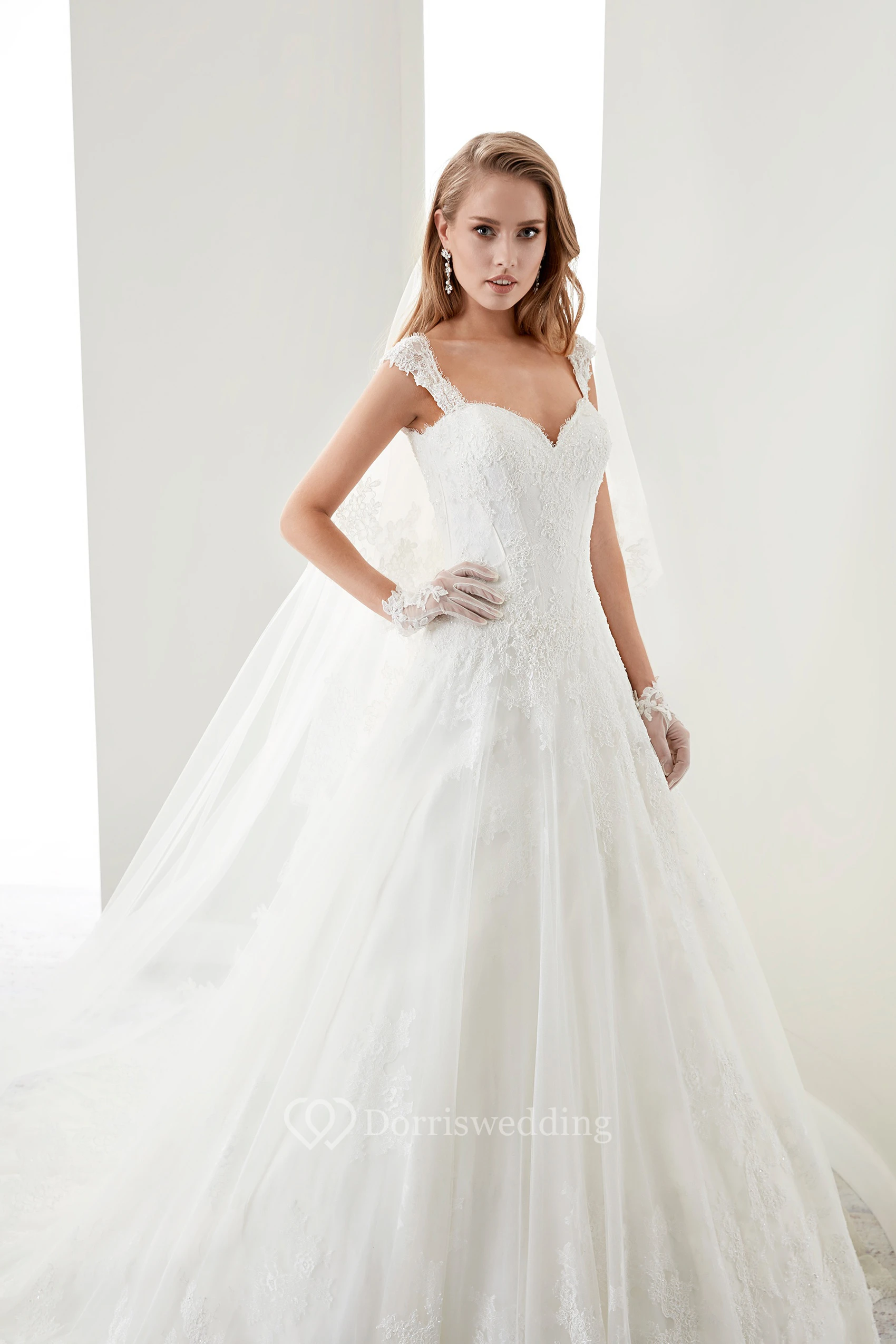 Sweetheart A-Line Lace Bridal Gown With Appliques Straps And Lace-Up Back