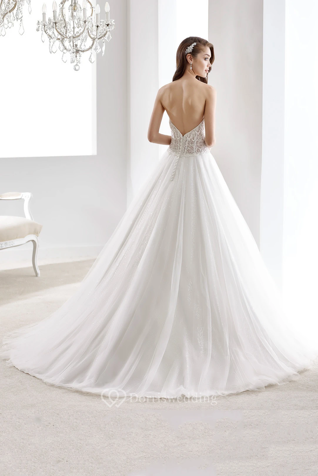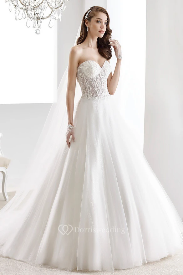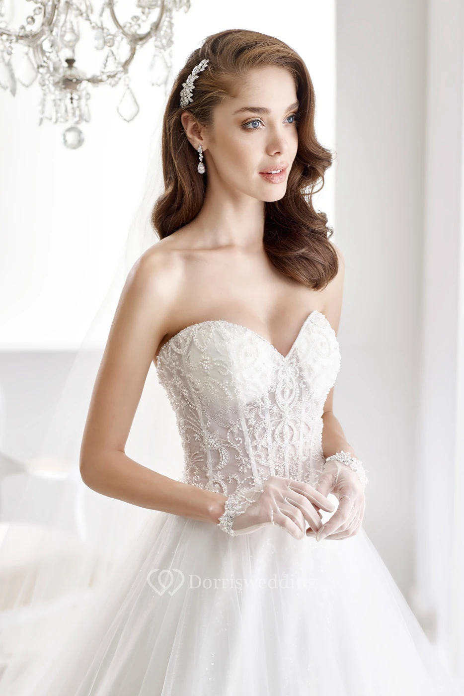 Sweetheart A-Line Lace Wedding Dress With Appliques Corset And Low-V Back