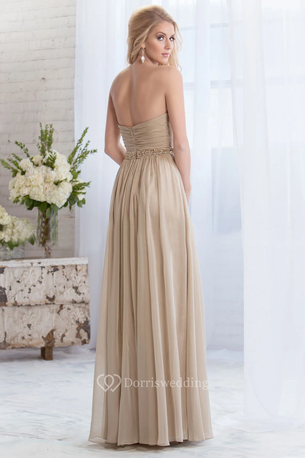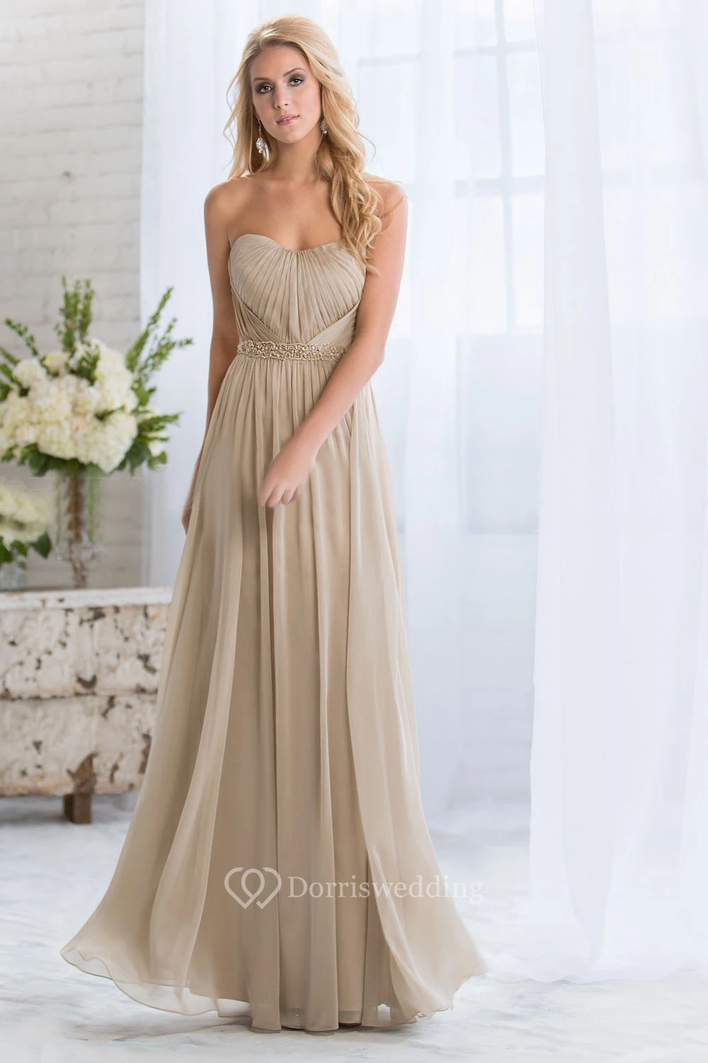 Sweetheart A-Line Long Bridesmaid Dress With Pleats And Crystal Waist