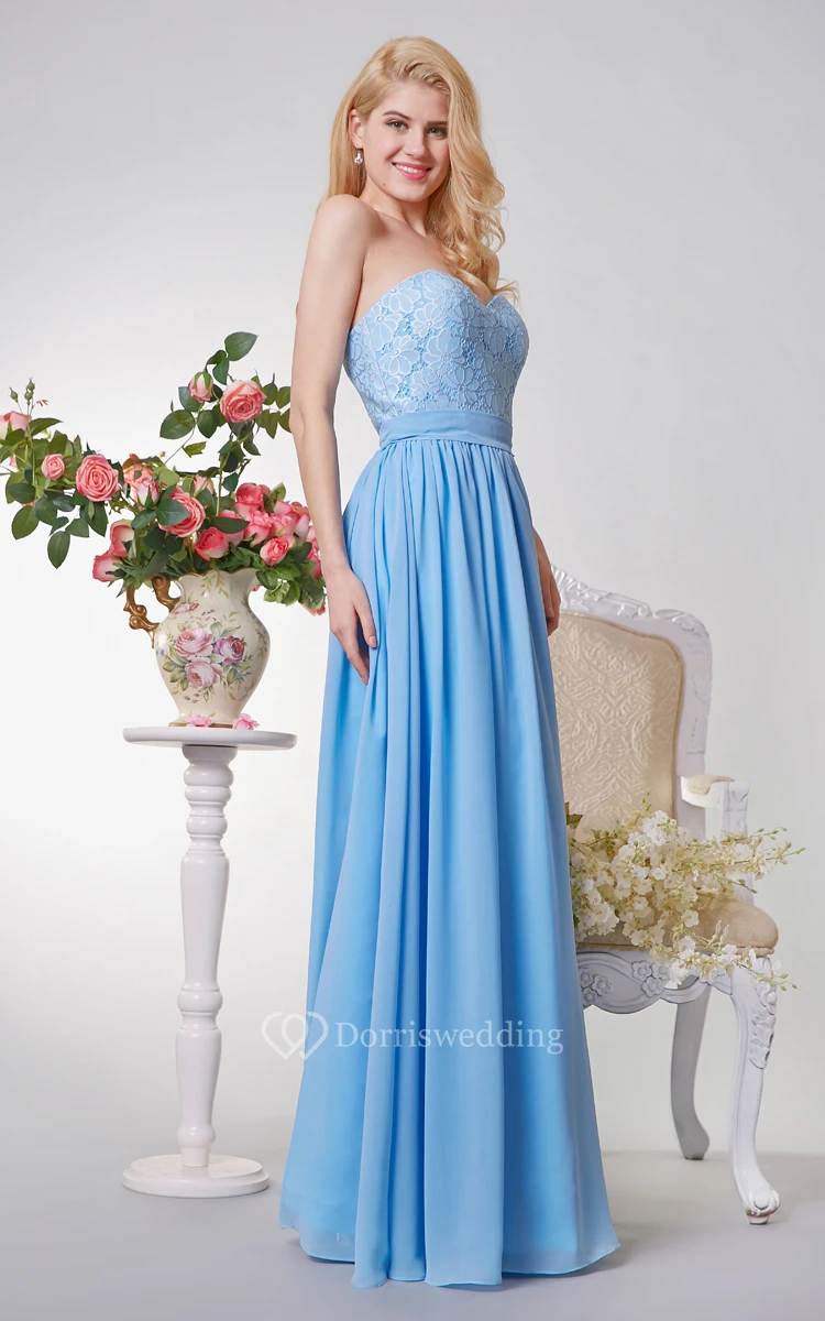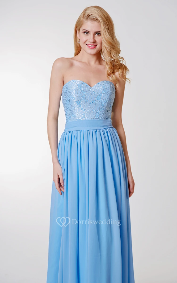 Sweetheart A-line Long Chiffon Dress With Lace Top