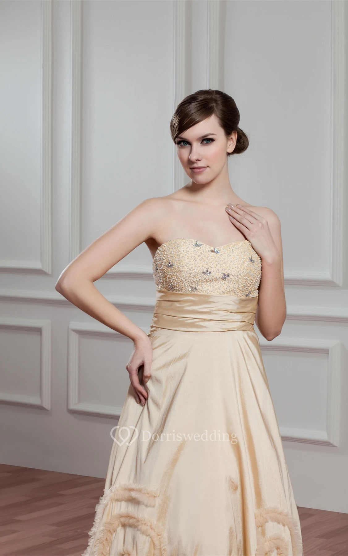 Sweetheart A-Line Pleated Beaded Top and Gown With Ruffles
