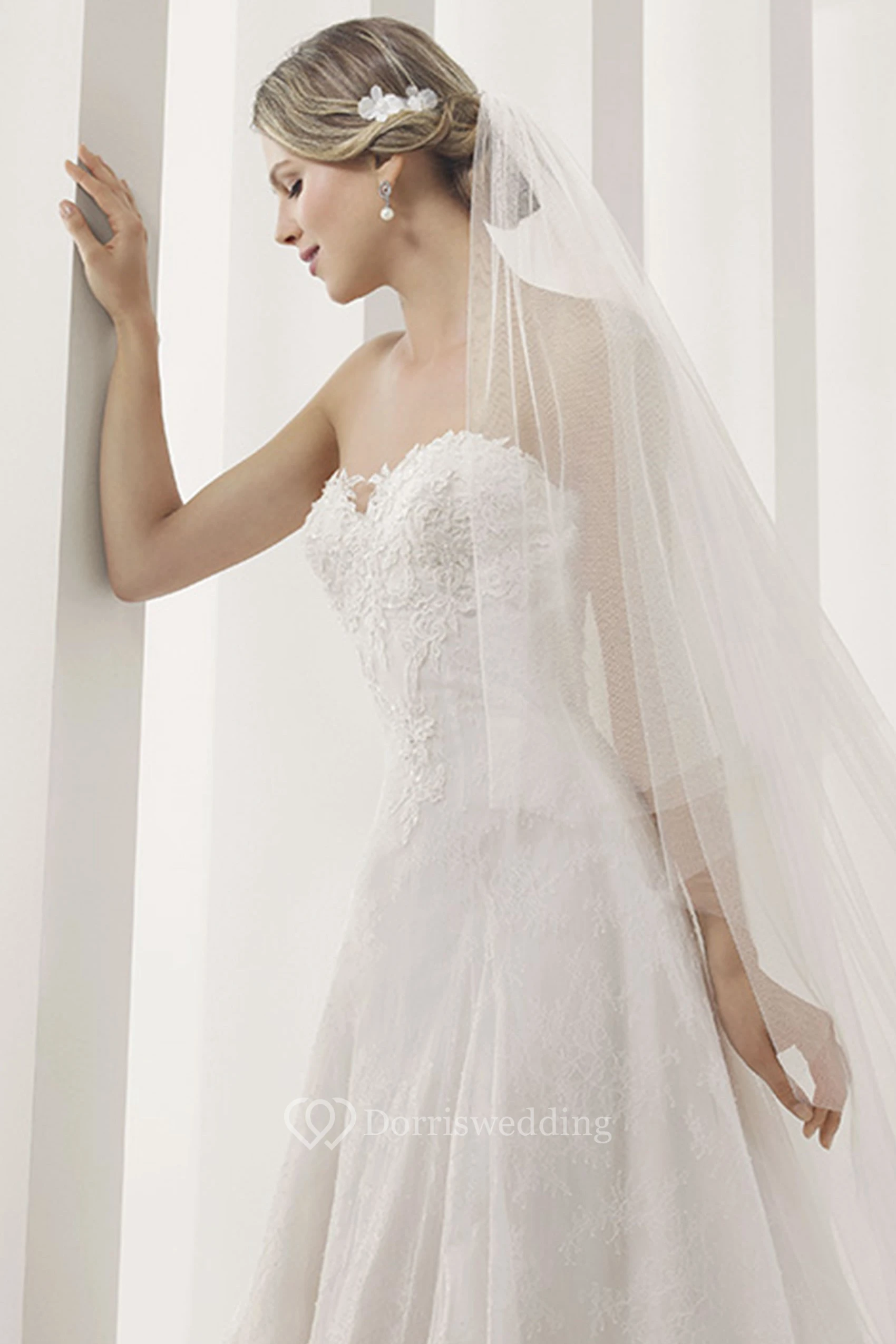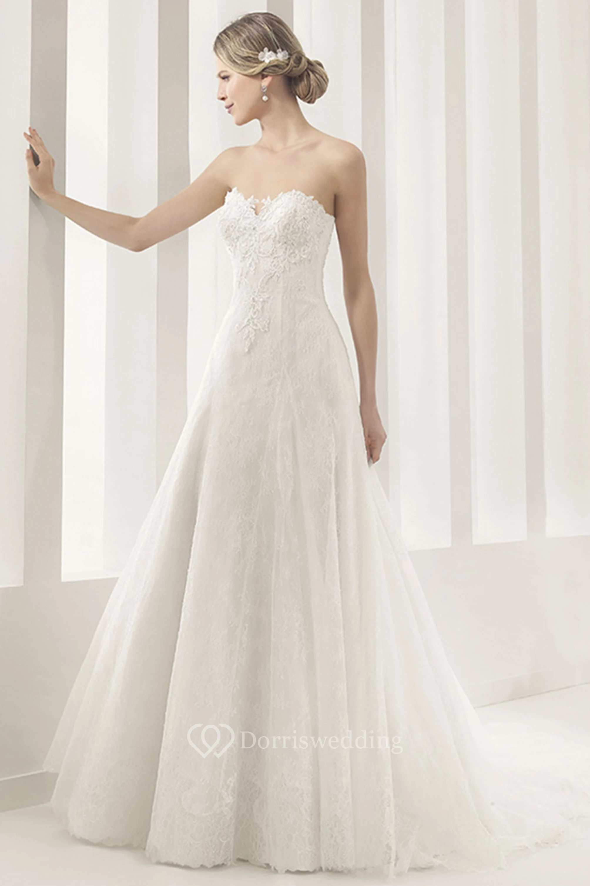 Sweetheart A-Line Pleated Lace Bridal Gown With Applique Details