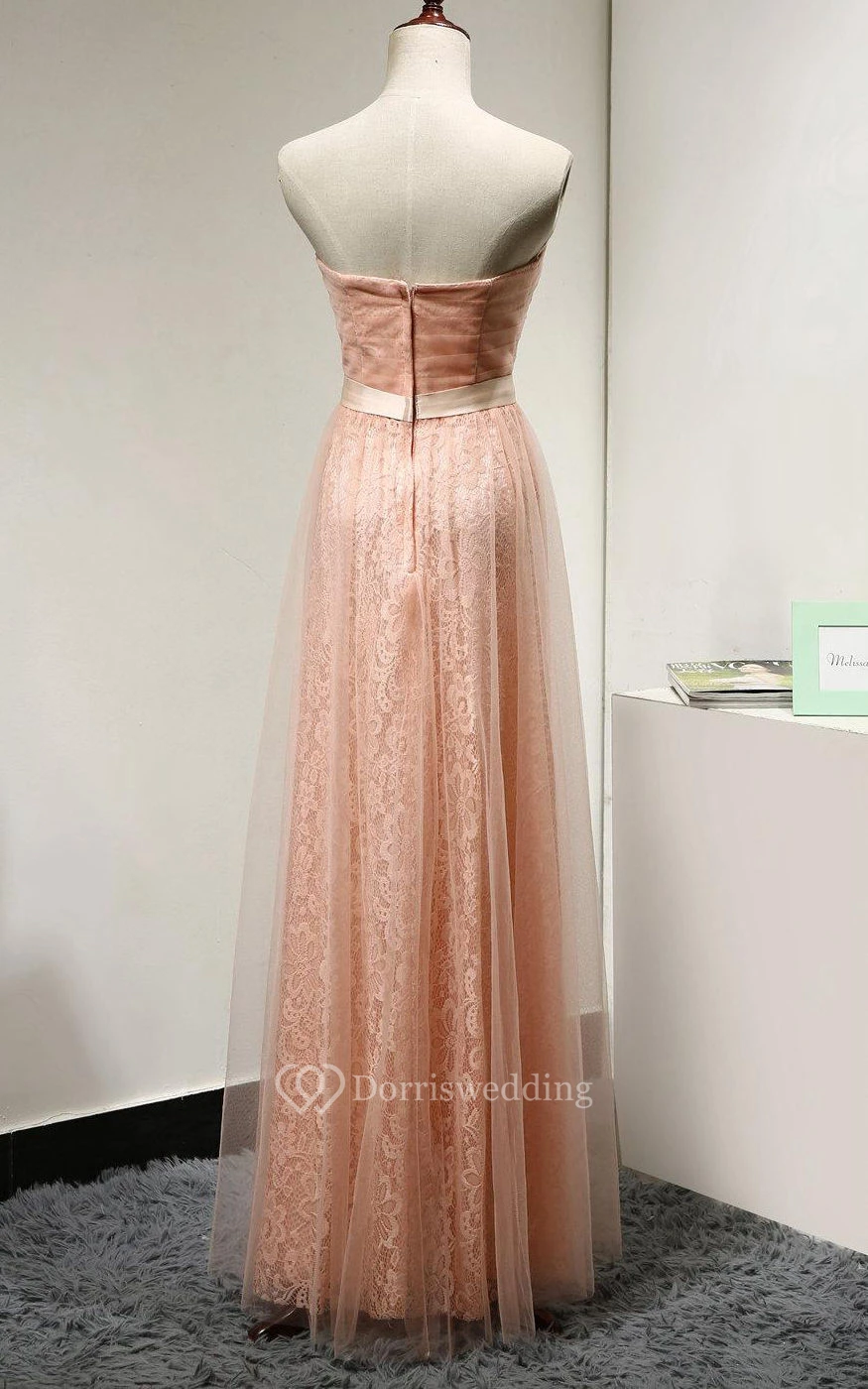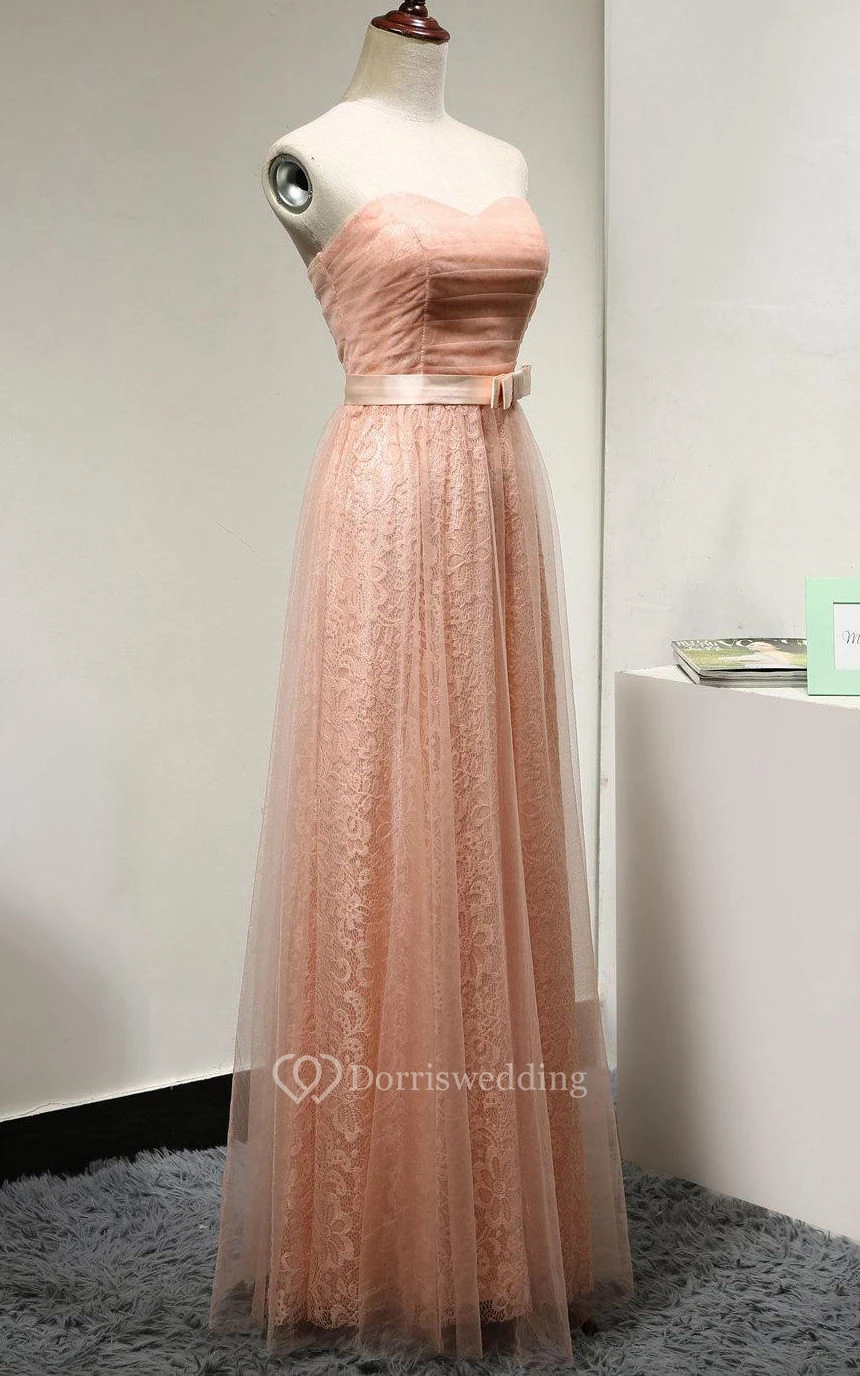 Sweetheart A-line Pleated Tulle Floor Length Dress With Lace and Bow